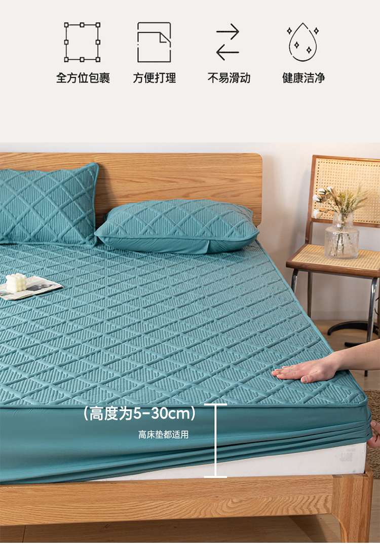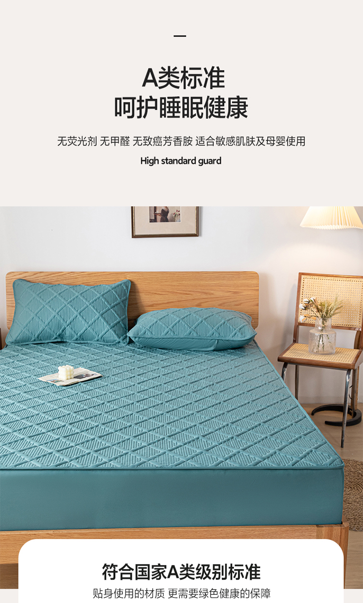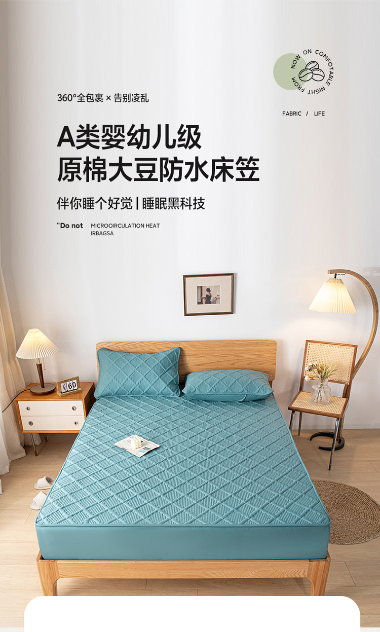 • 91家纺网 家纺一手货源 找家纺 东宇 2023新款A类原棉防水床笠 无印青兰