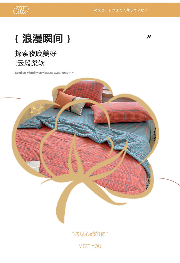 商品名称:(总)价格下调三沁2025最新A类大豆纤维全棉色织水洗棉夏被四件套夏凉被空调被子无印良品