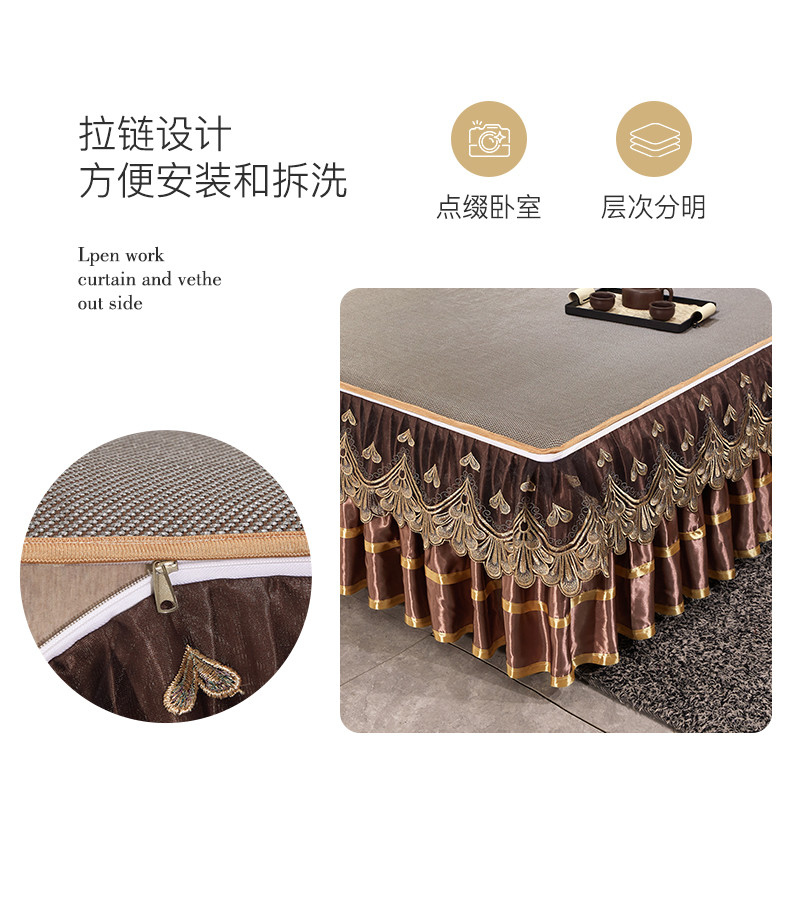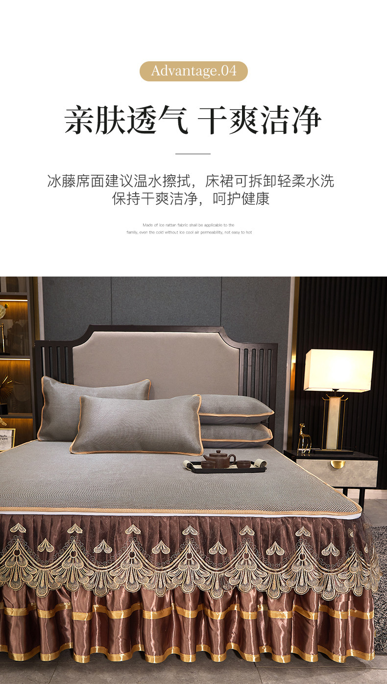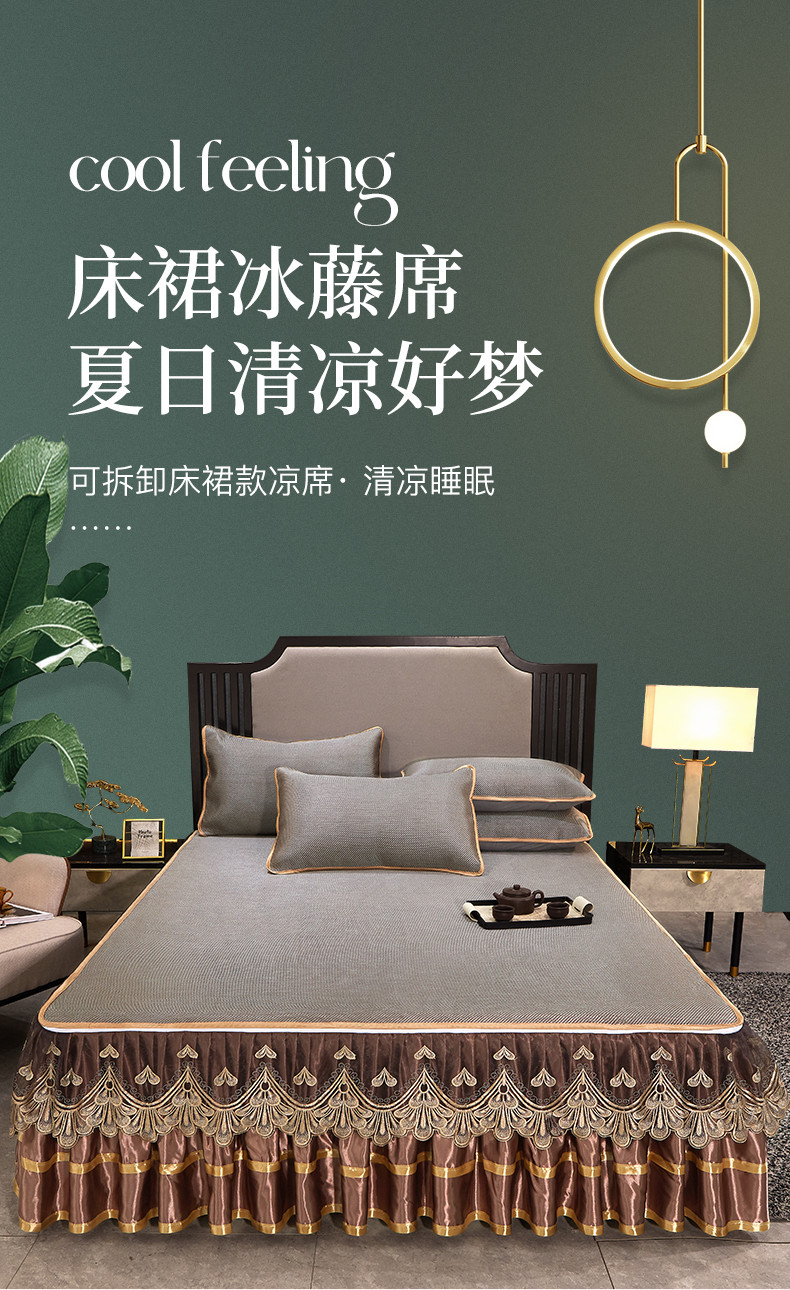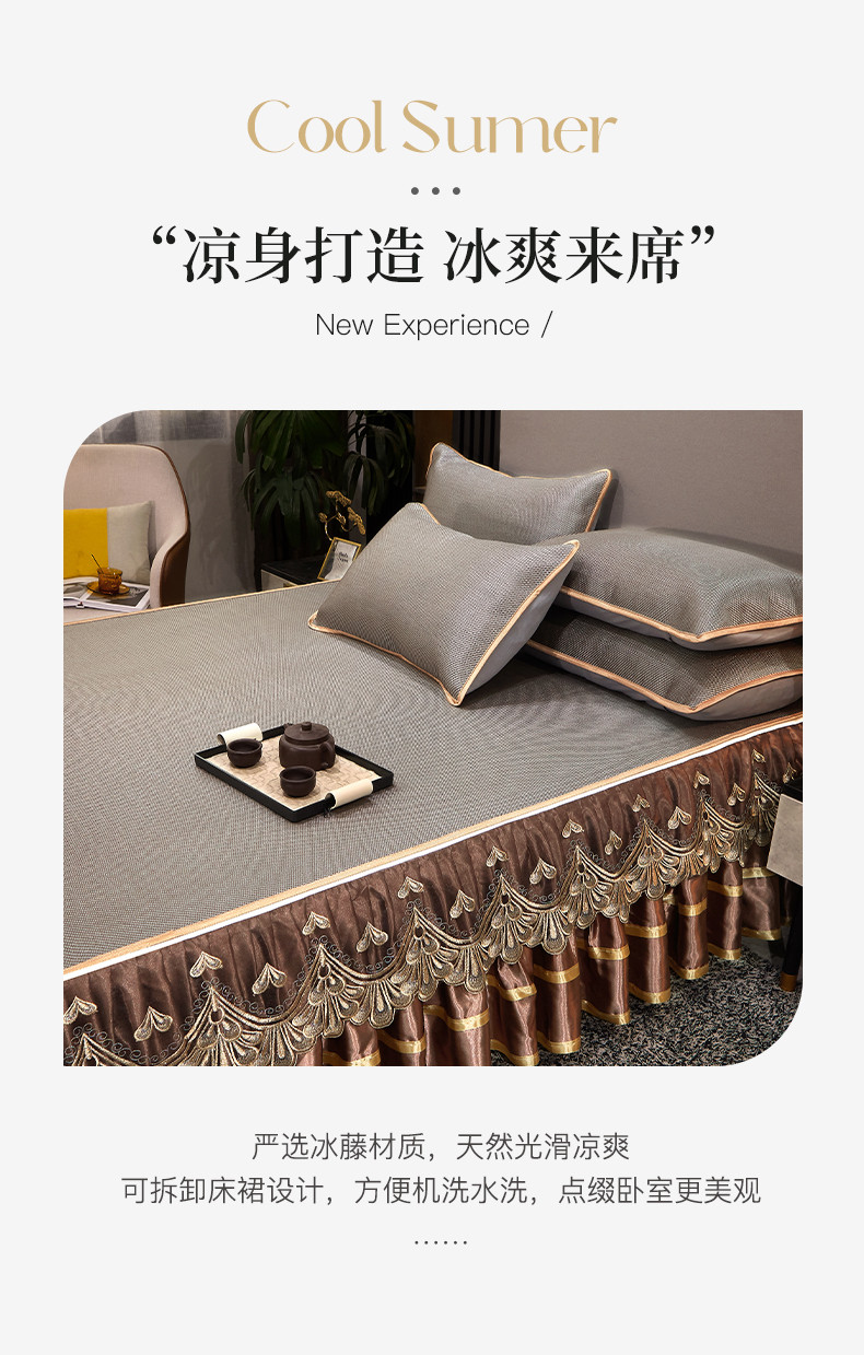 商品名称:罗艺轩 2024新款可拆卸床裙款冰藤席 富贵旺族-奶咖