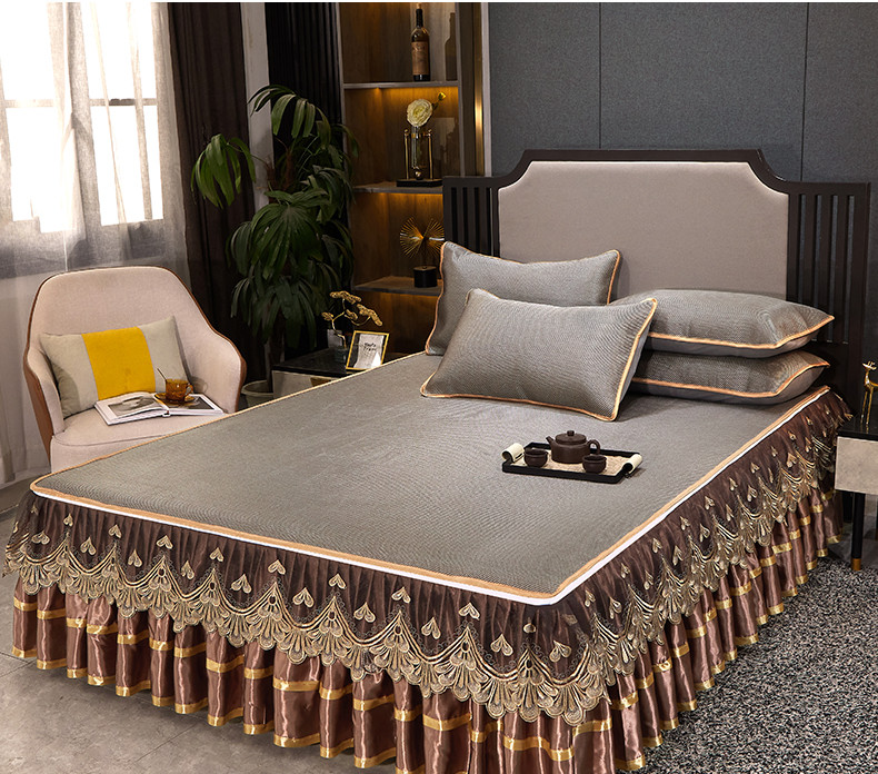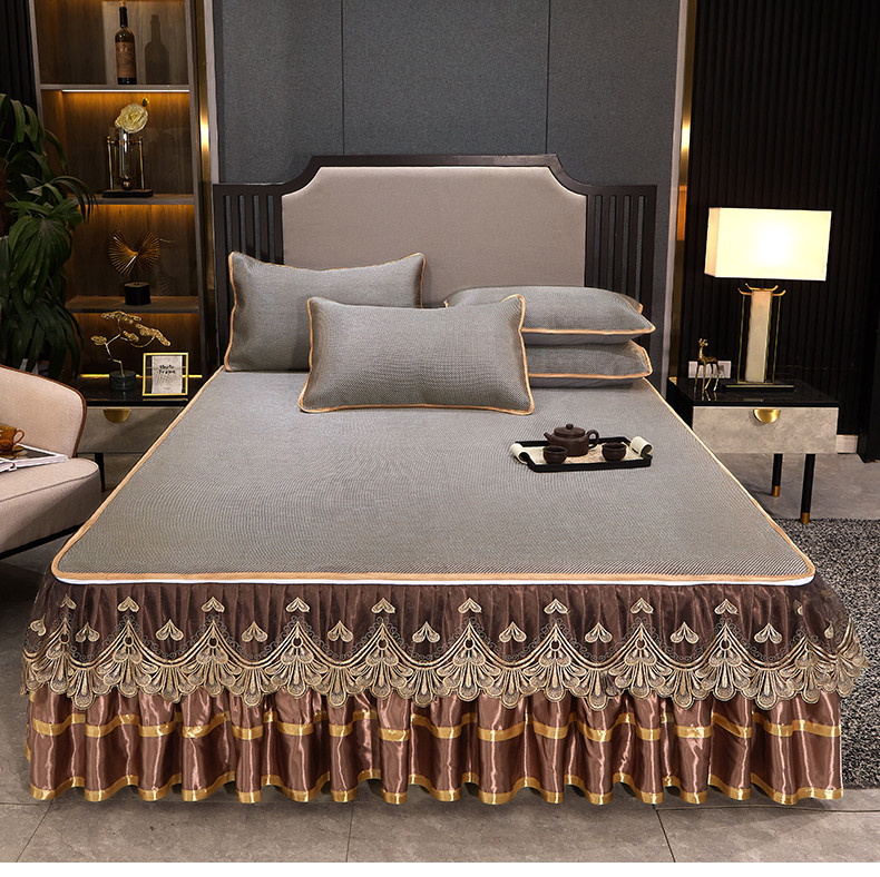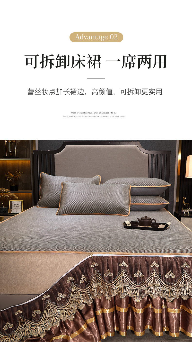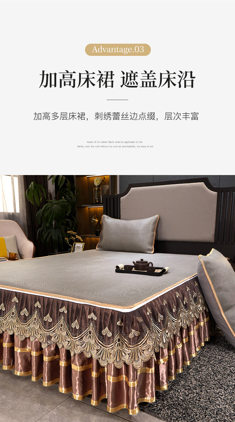 商品名称:罗艺轩 2024新款可拆卸床裙款冰藤席 富贵旺族-奶咖