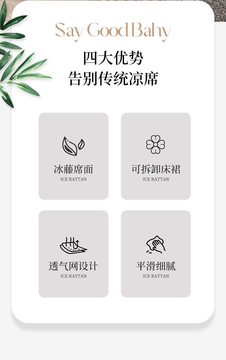 罗艺轩 2024新款可拆卸床裙款冰藤席 富贵旺族-奶咖