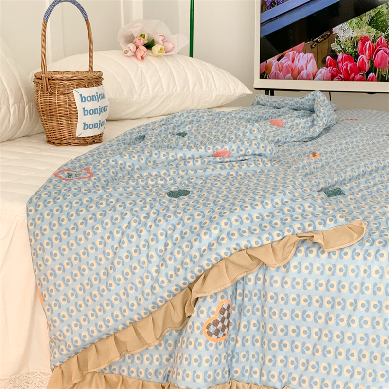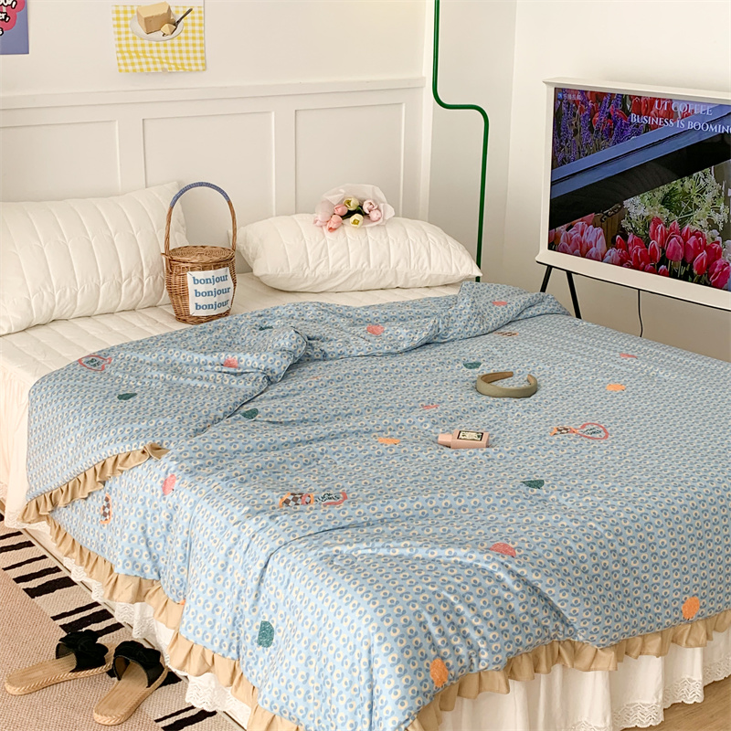 商品名称:昔可家纺 2023新款花边款云柔针织大豆夏被 心动小花