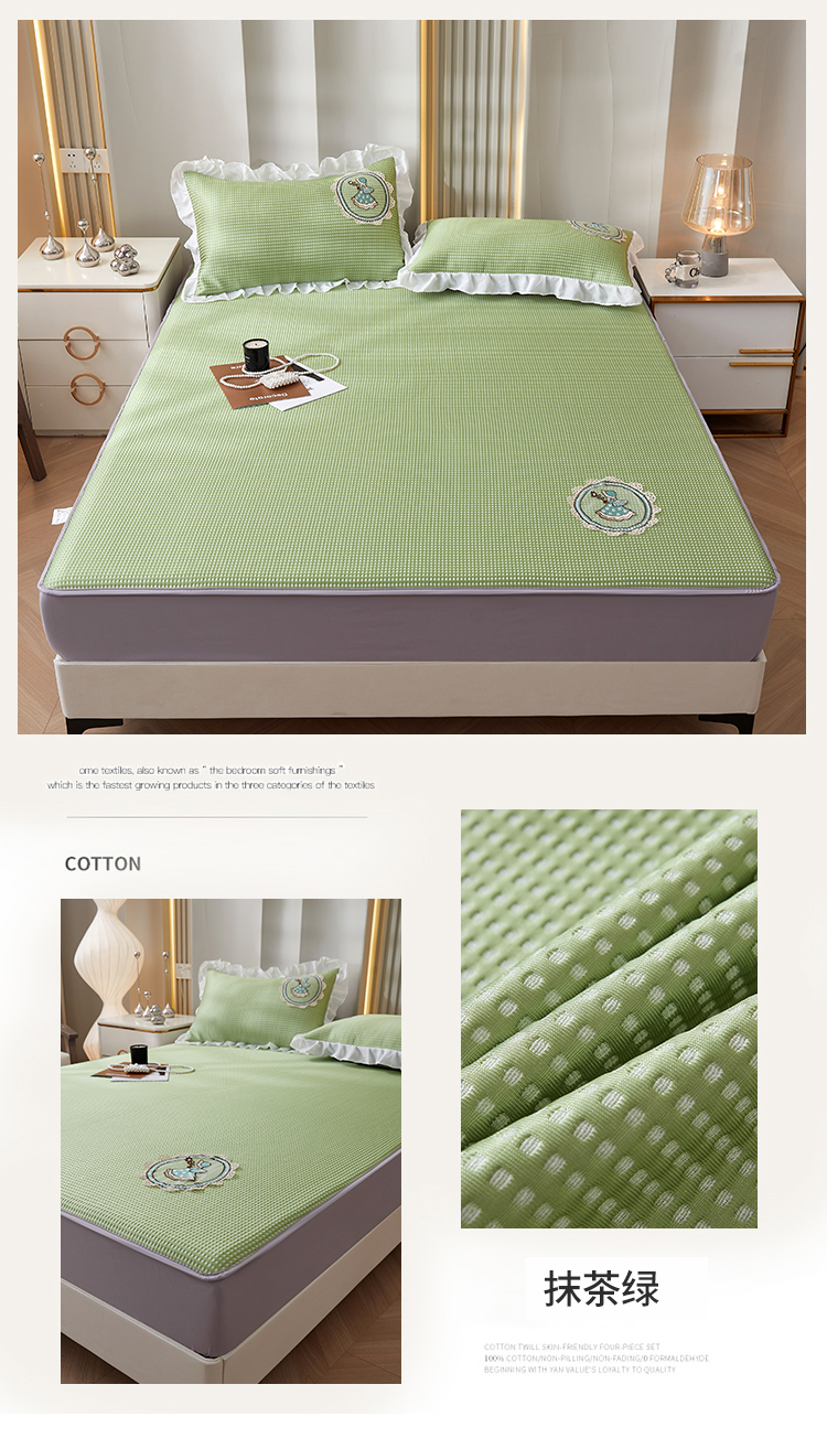 商品名称:家之硕2024新款A类华夫格冰爽软床笠款花边凉席三件套抹茶绿