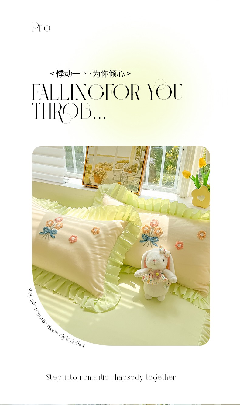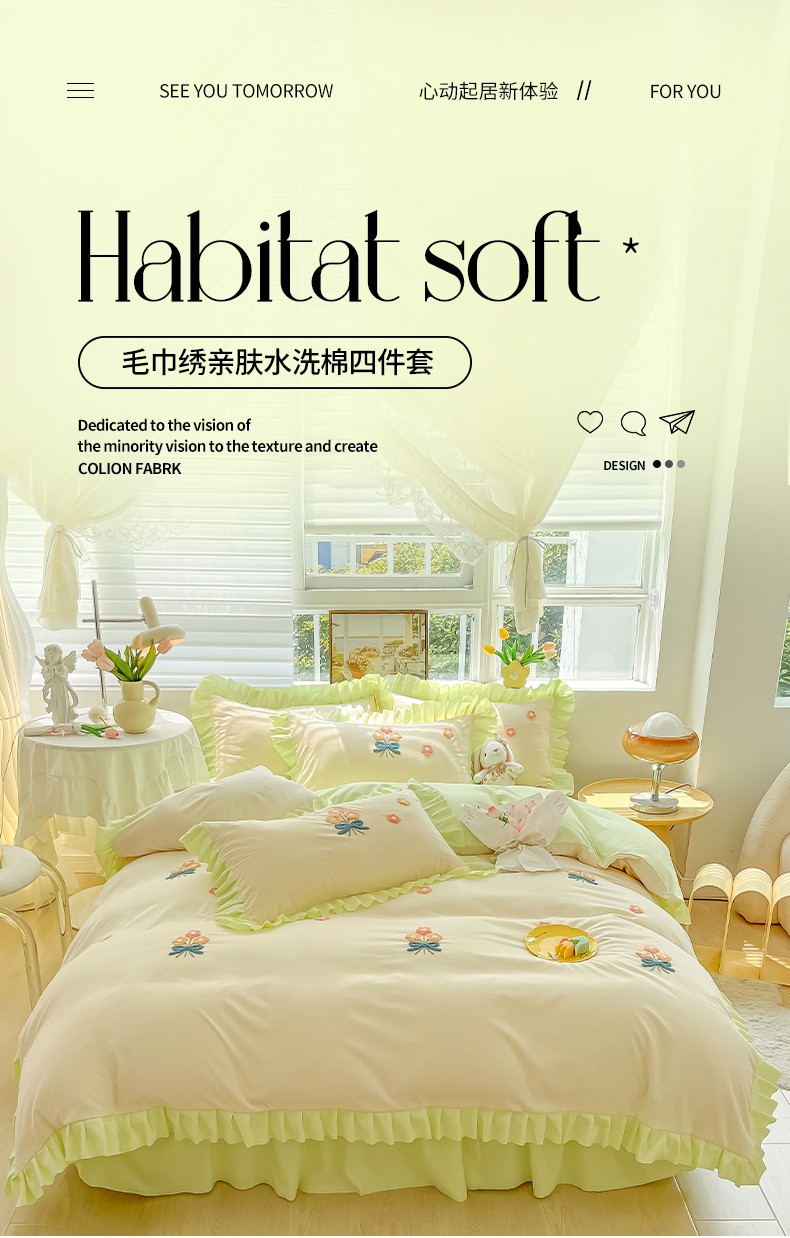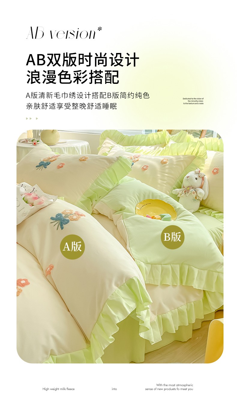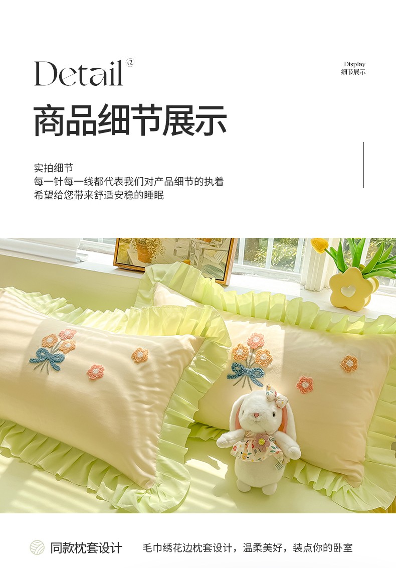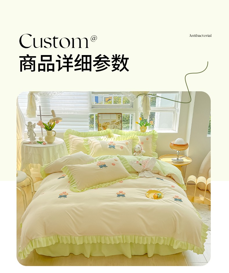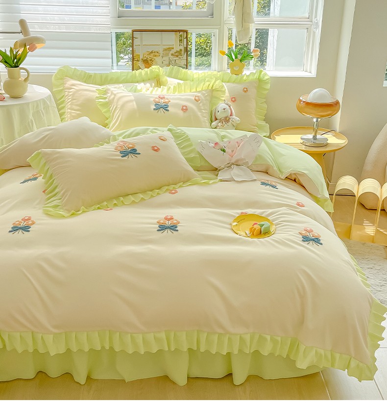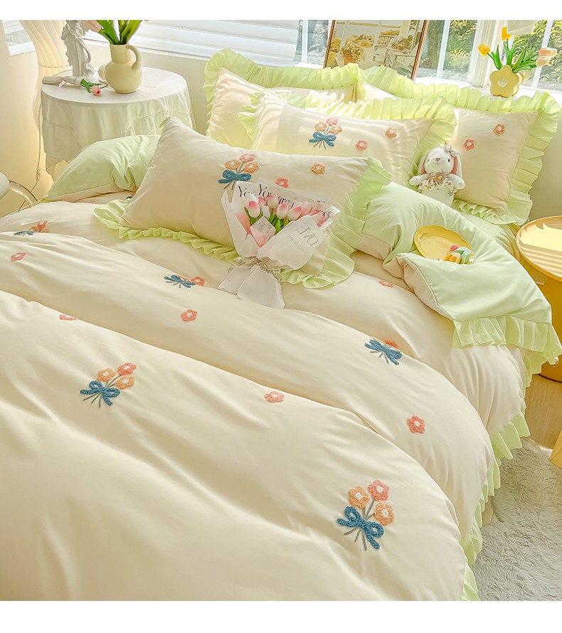 当前位置: 91家纺网 > 商品网购 > 床品套件 > 四件套 > 毛巾绣四件套 > 韩都 2023直播韩版绣花床单床裙四件套-思语 思语-青草绿