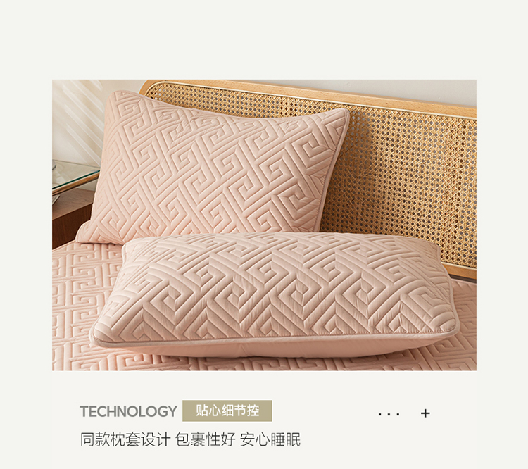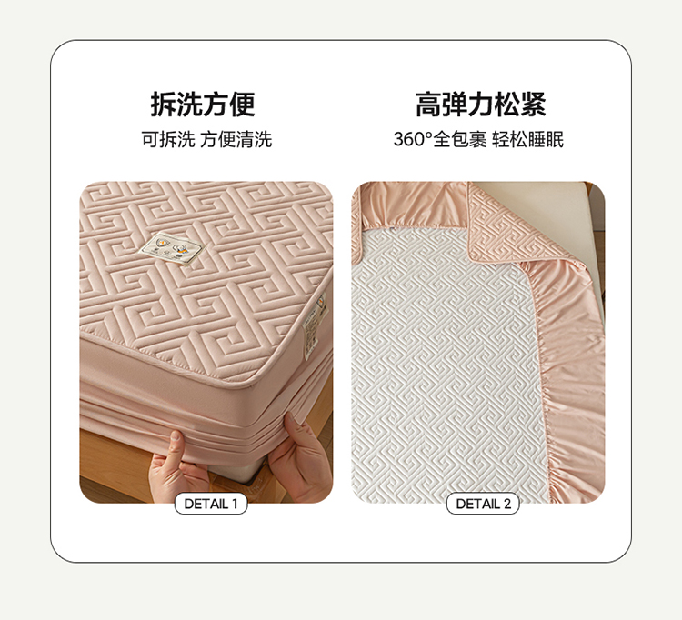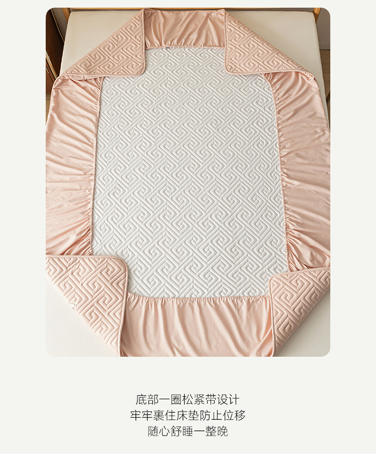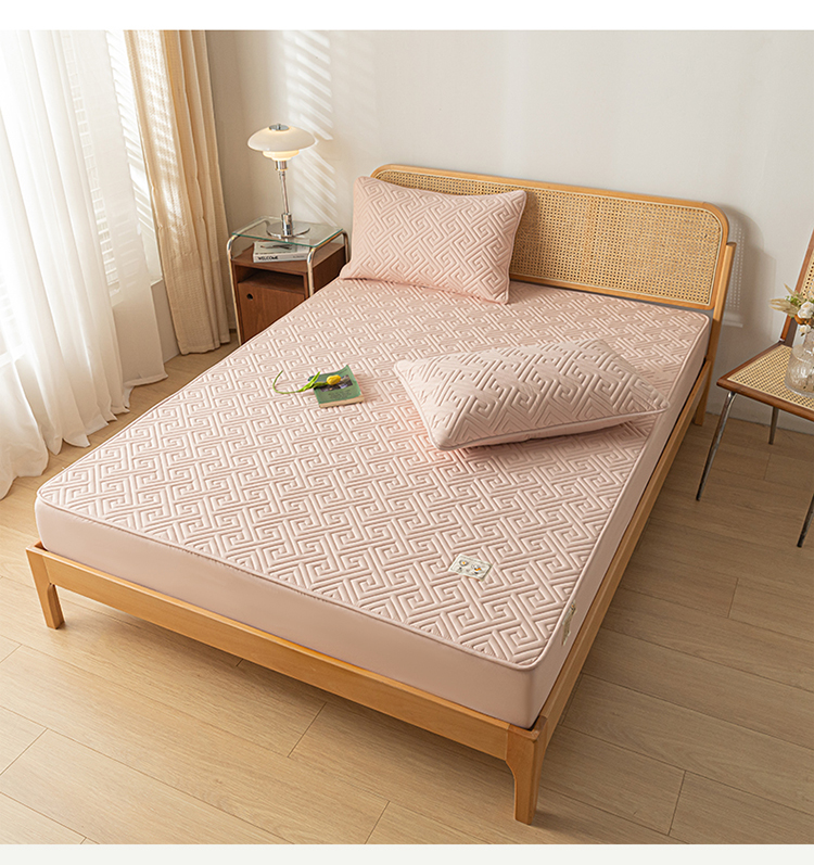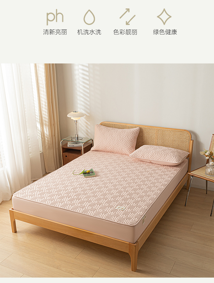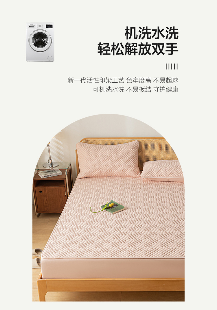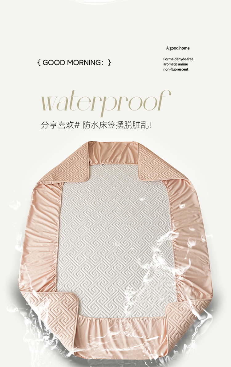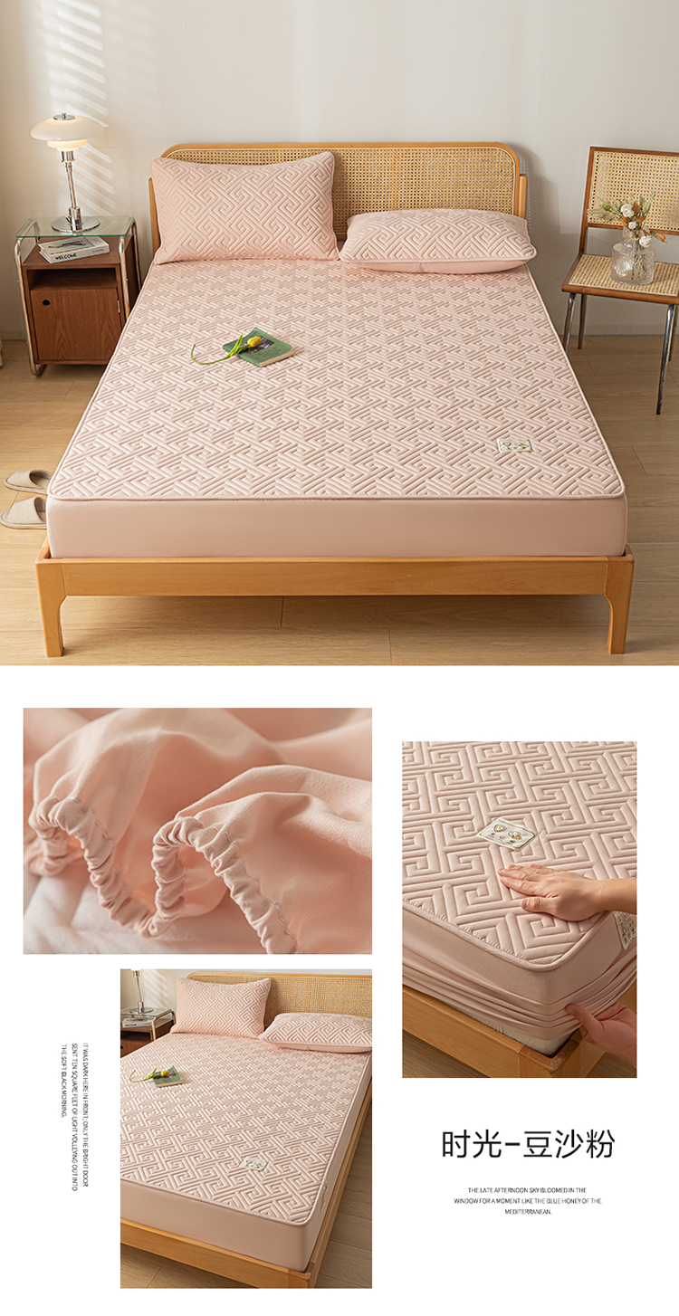 • 91家纺网 家纺一手货源 找家纺 芬晴家纺 2023新款A类母婴级防水夹棉床笠 时光-豆沙粉