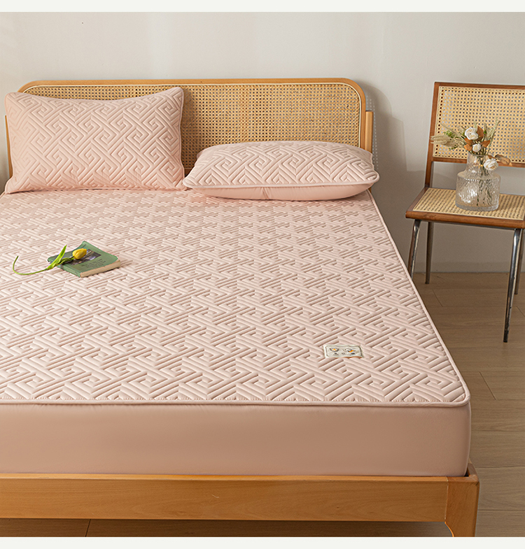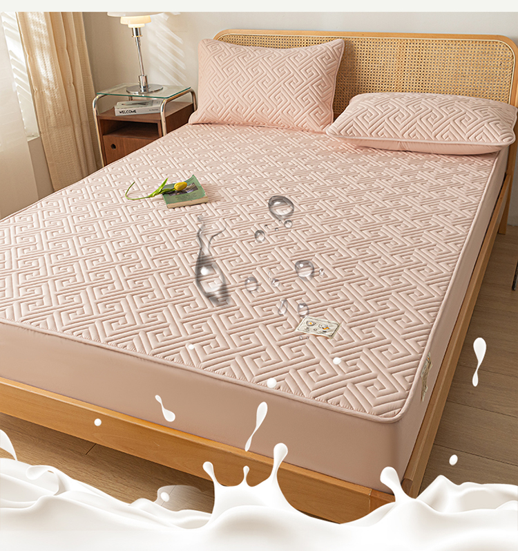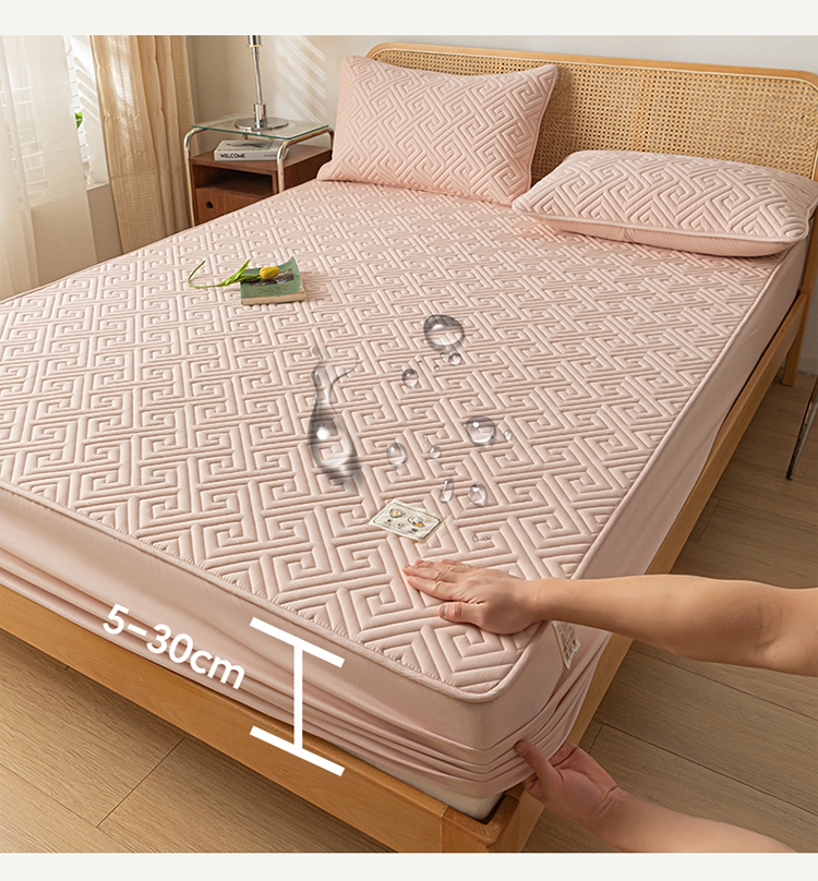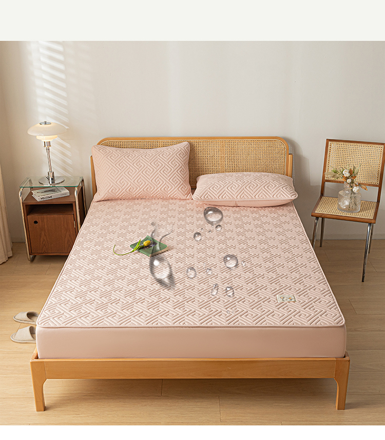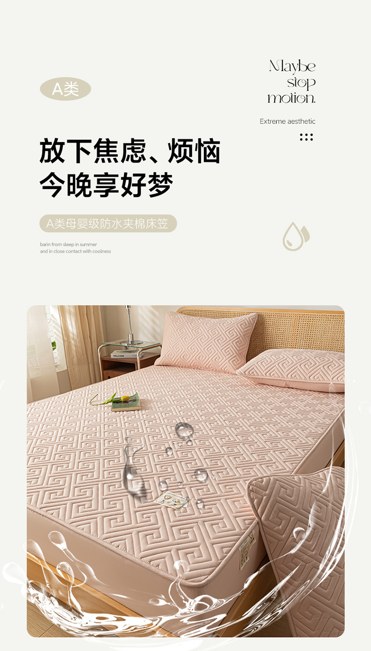 芬晴家纺 2023新款A类母婴级防水夹棉床笠 时光-豆沙粉