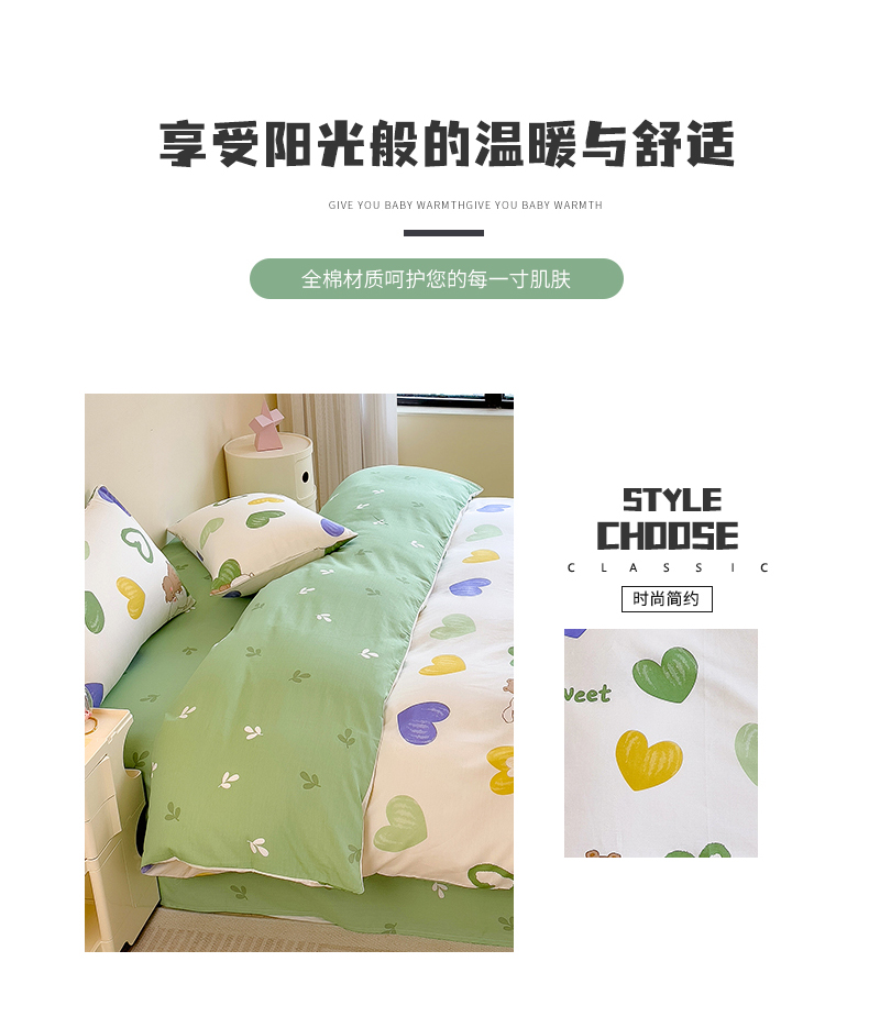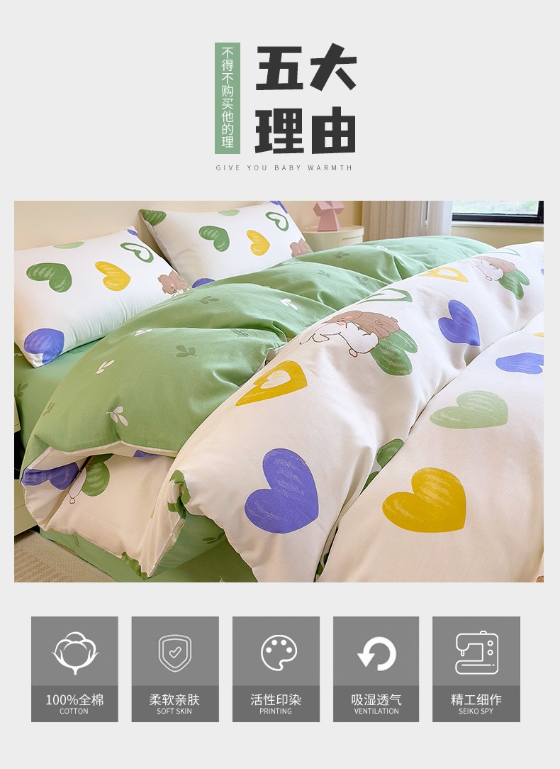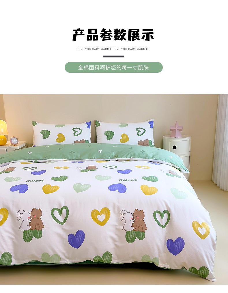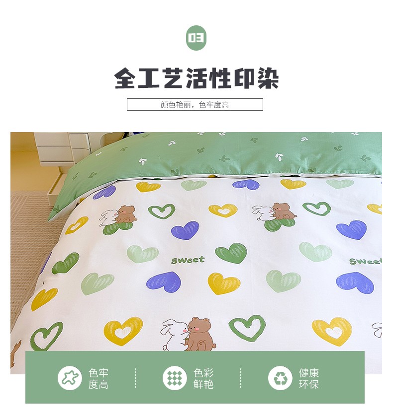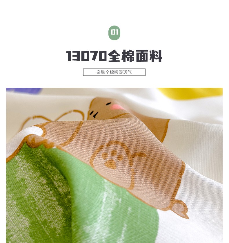 • 91家纺网 家纺一手货源 找家纺 芃成 2023新款全棉13070单被套 两小无猜 绿