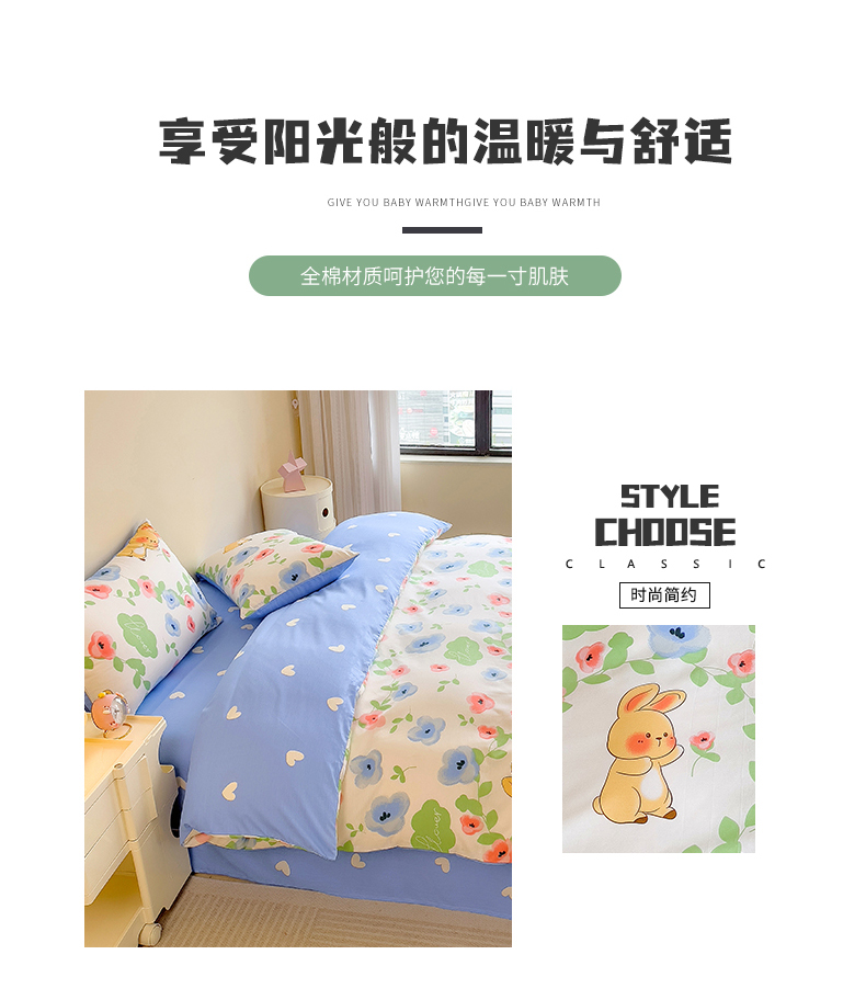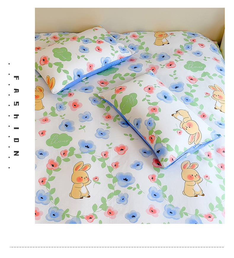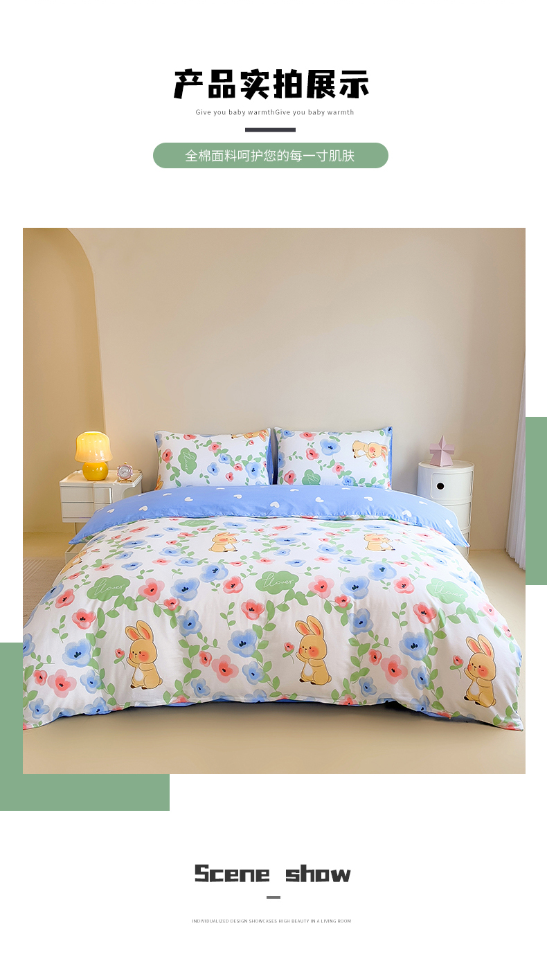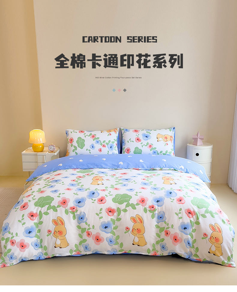 芃成家纺 2023新款全棉13070四件套 兔兔花海