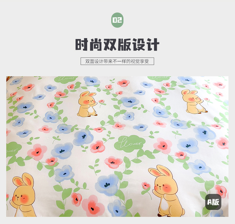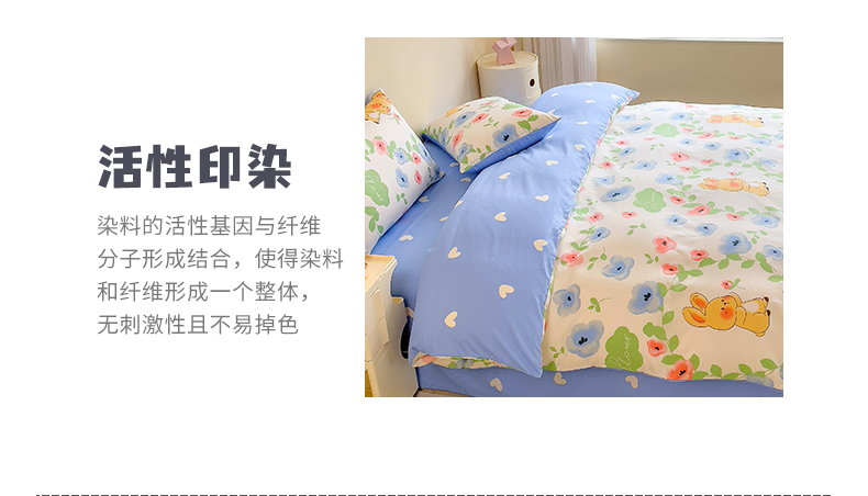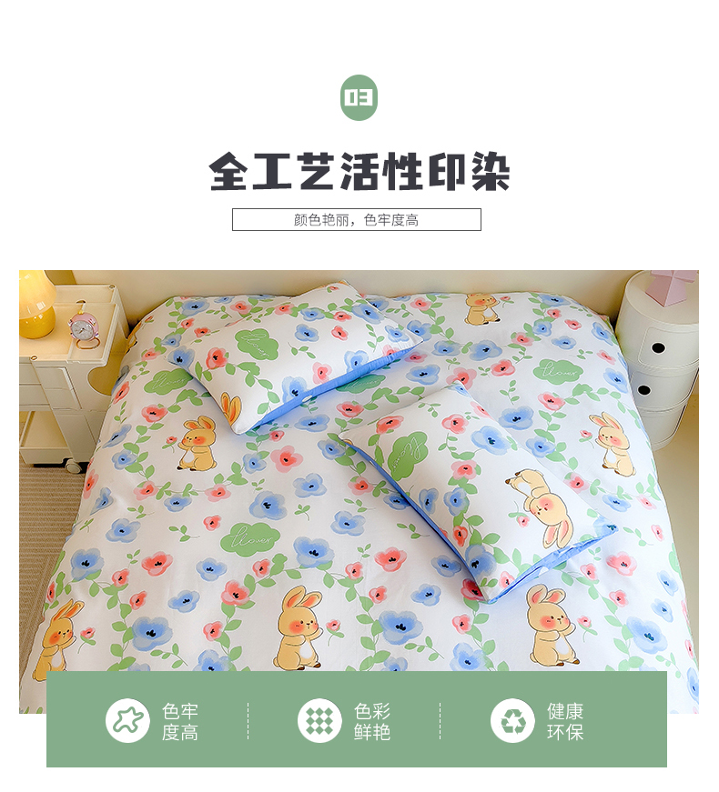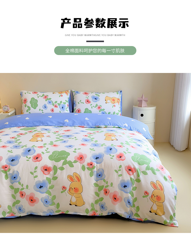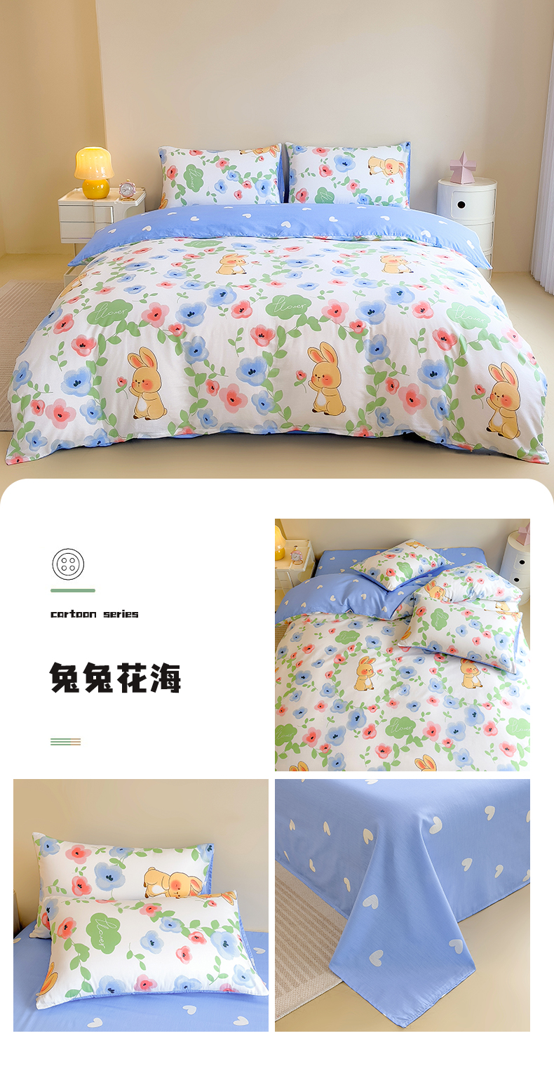 商品名称:芃成家纺 2023新款全棉13070四件套 兔兔花海