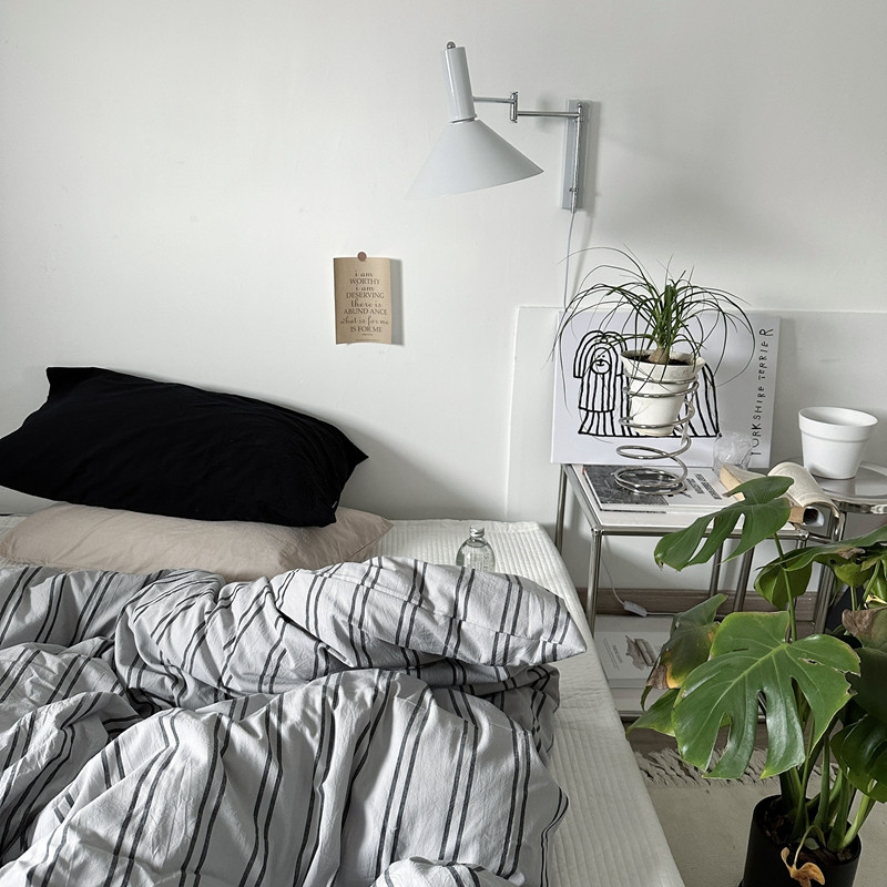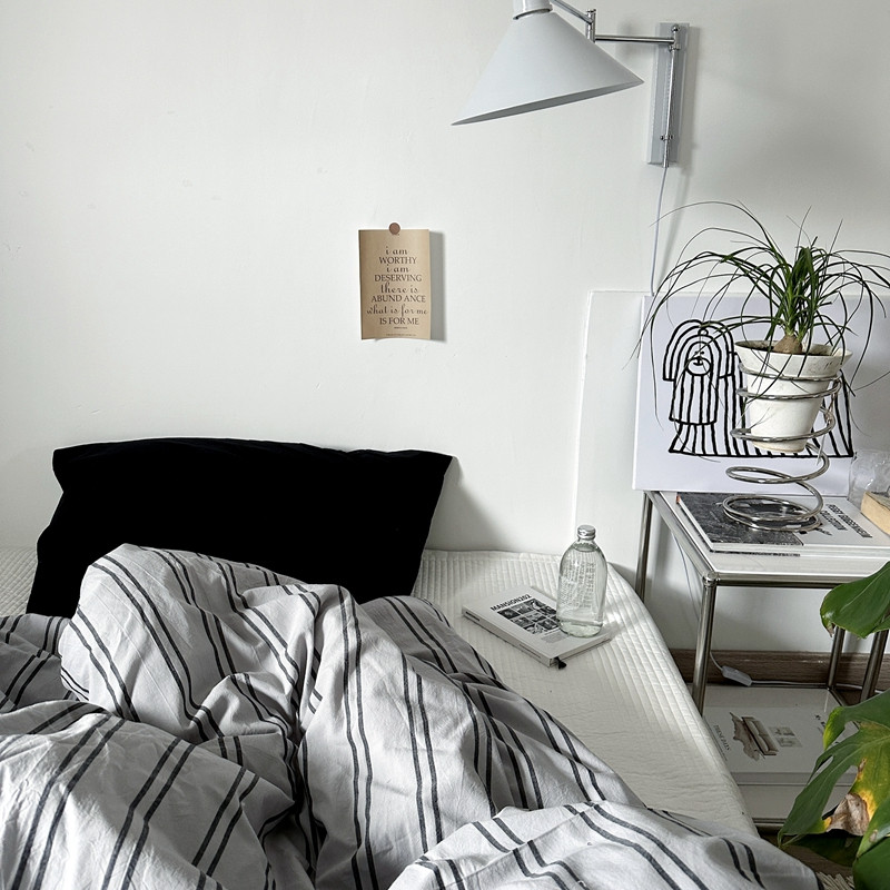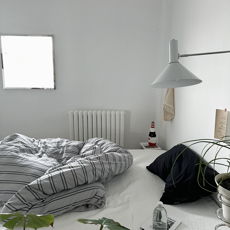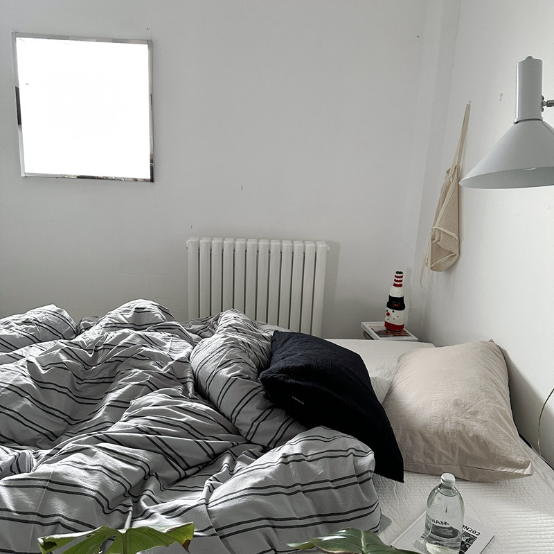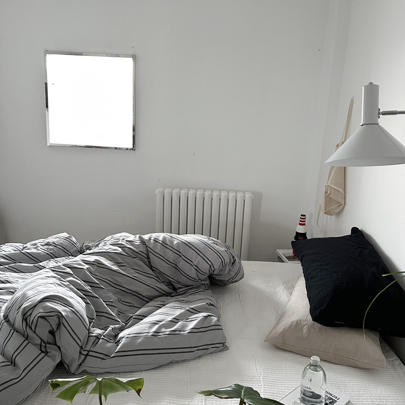 (总)恋恋三季 2025新款ins博主简约条纹极简风纯棉单被套,色织水洗-黑白世界,色织水洗-空白格