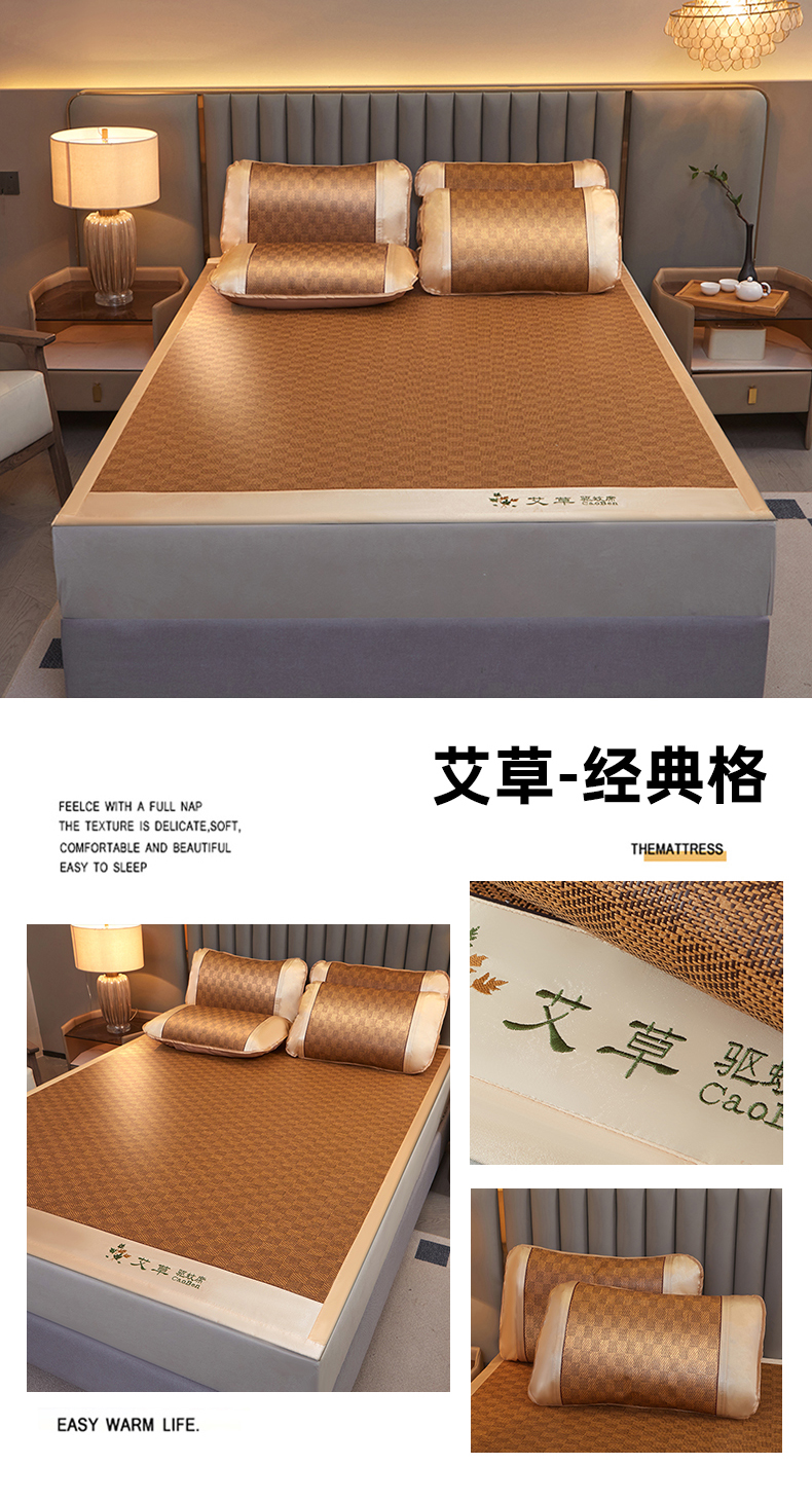 (总)席都 2024新款冰藤席床席三件套-三明治-冰藤席系列,灰,金,绿,粉,蓝