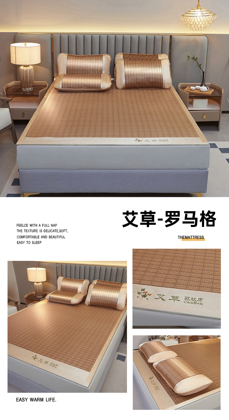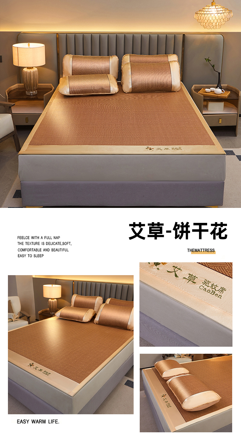 (总)席都 2024新款艾草双面藤席,饼干花,步步高,罗马格