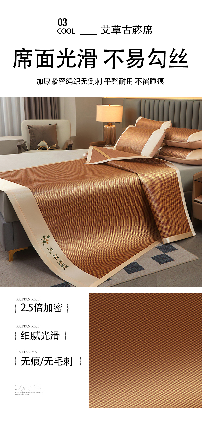 席都 2025新款舒爽藤席系列—雪藤席3D复合乙伦凉感裸睡PE凉席三件套床席款咖色,咖色