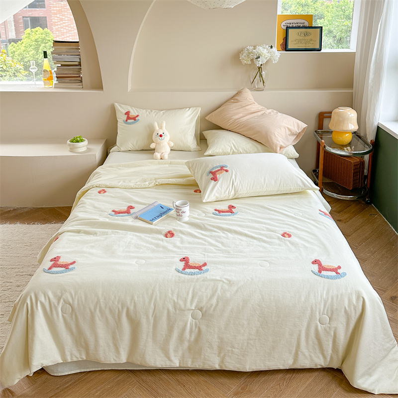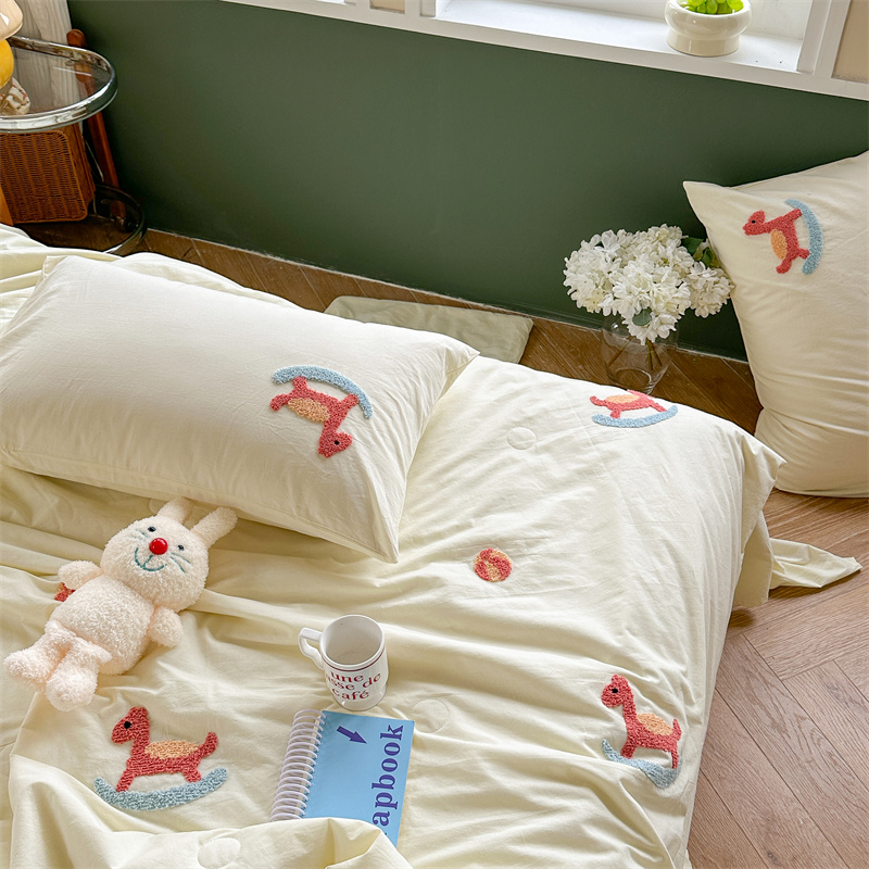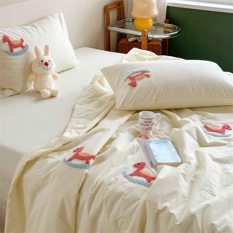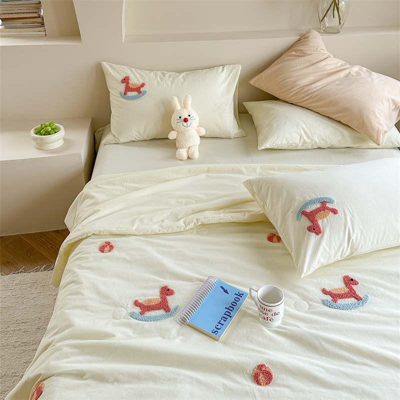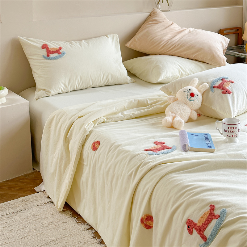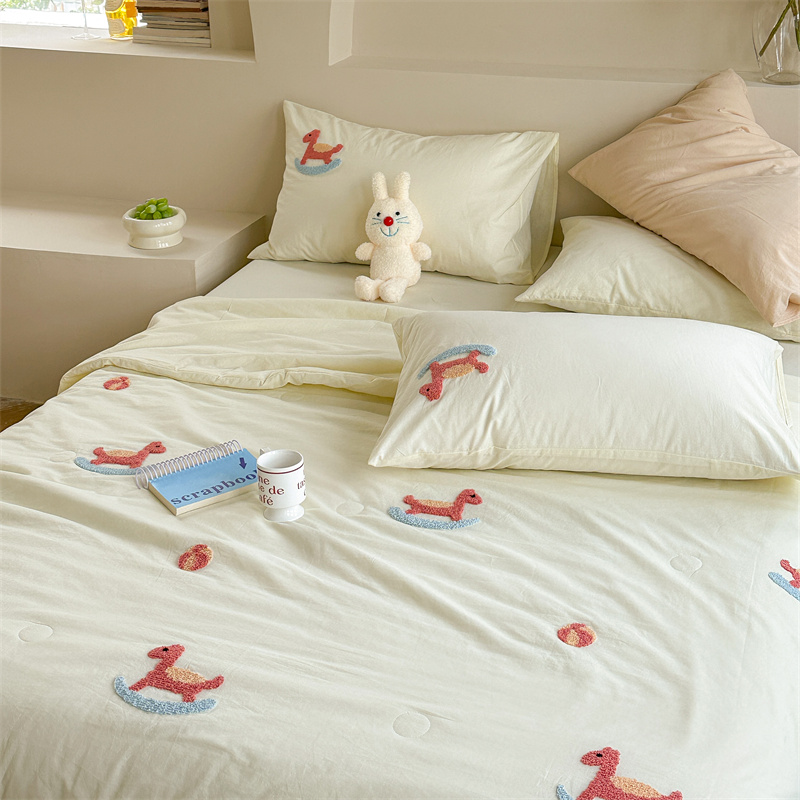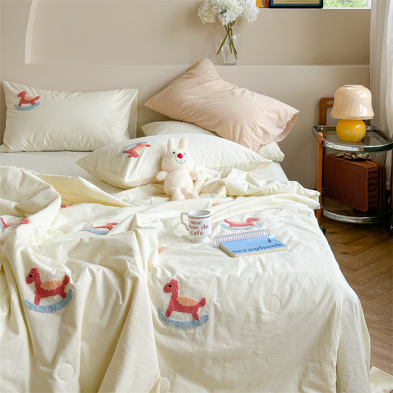 柚子YOUTH 2023新款马卡龙全棉水洗棉毛巾绣夏被四件套 摇摇马