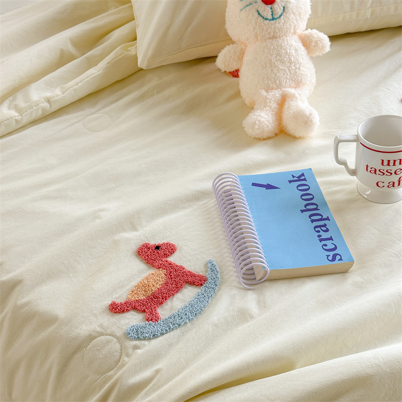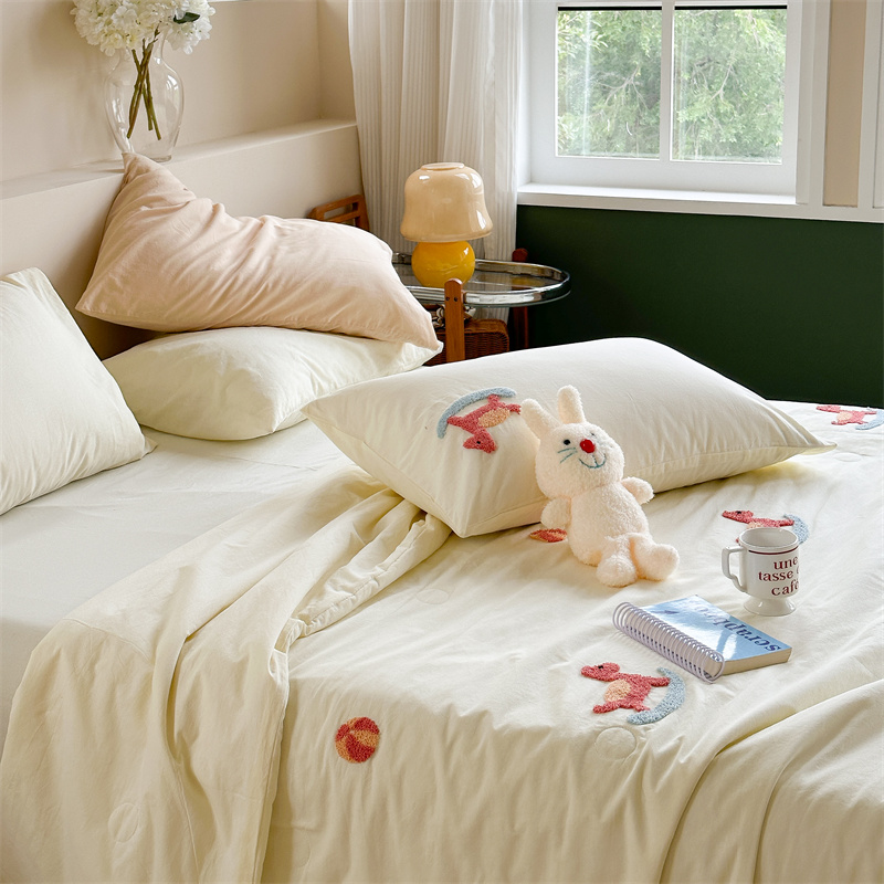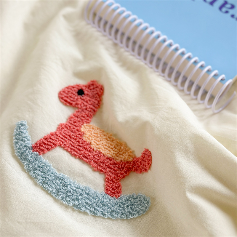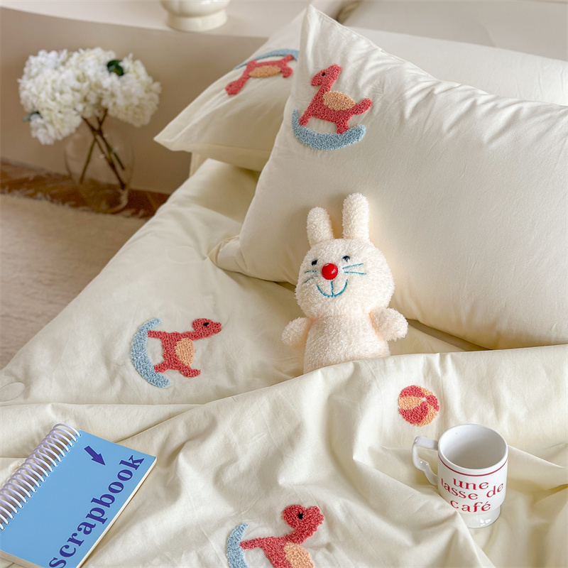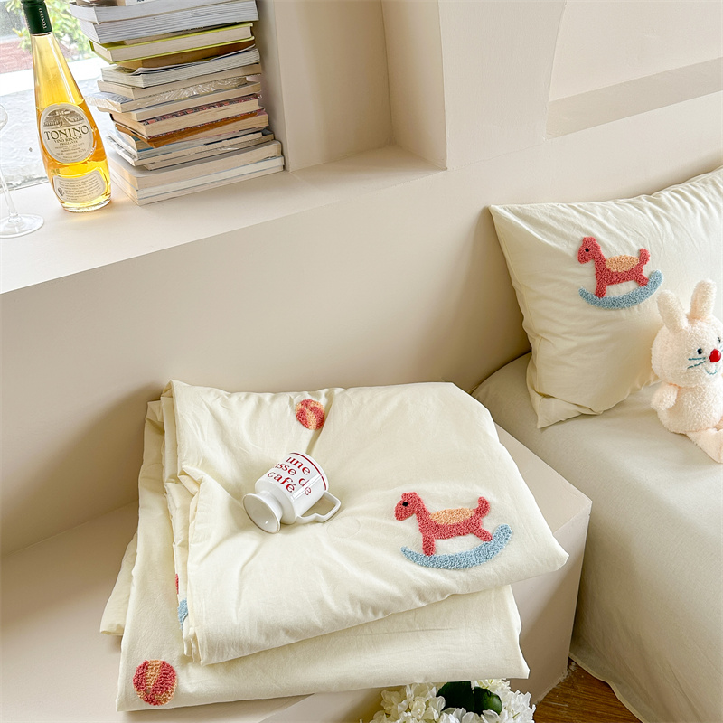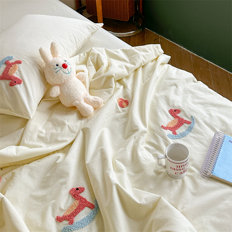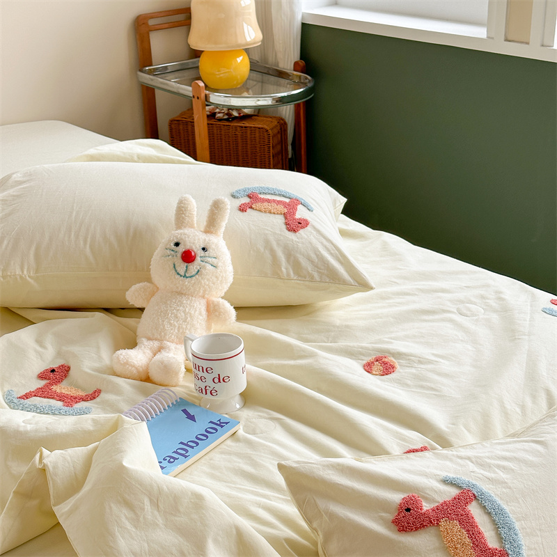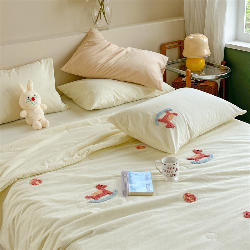 柚子YOUTH 2023新款马卡龙全棉水洗棉毛巾绣夏被四件套 摇摇马
