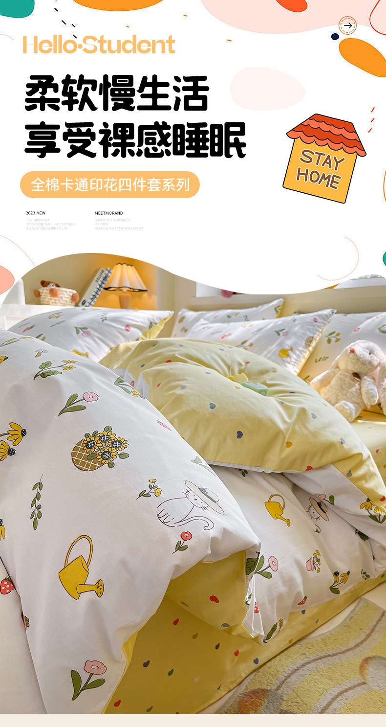 798家纺 2023新款卡通系列13070全棉印花四件套-摩伊 猫咪不吃鱼
