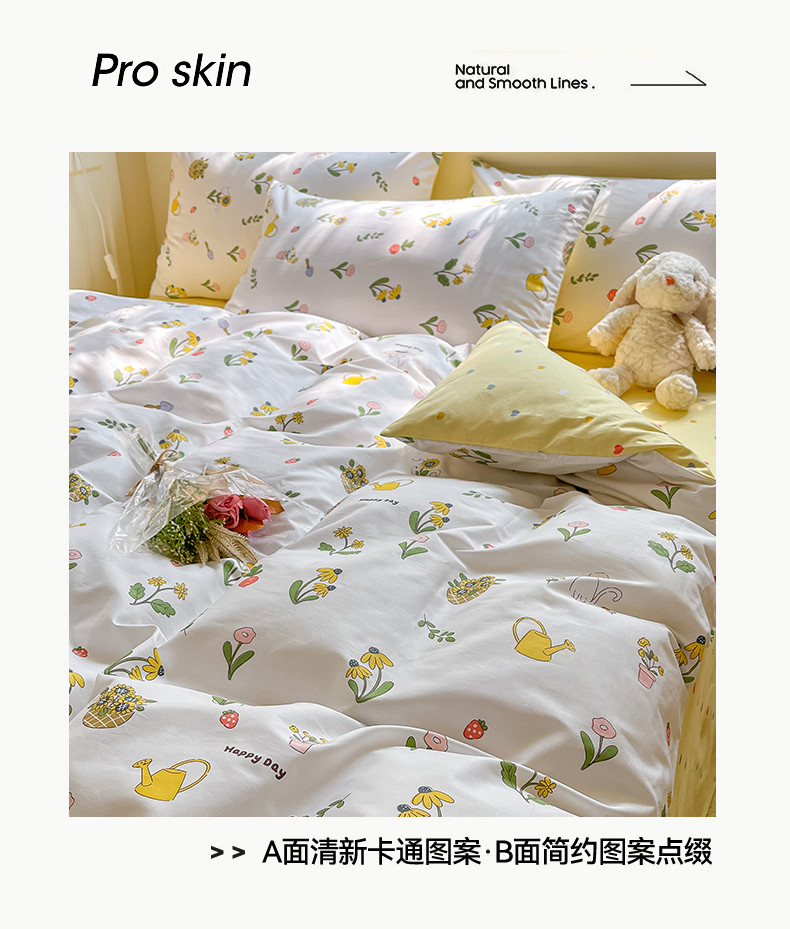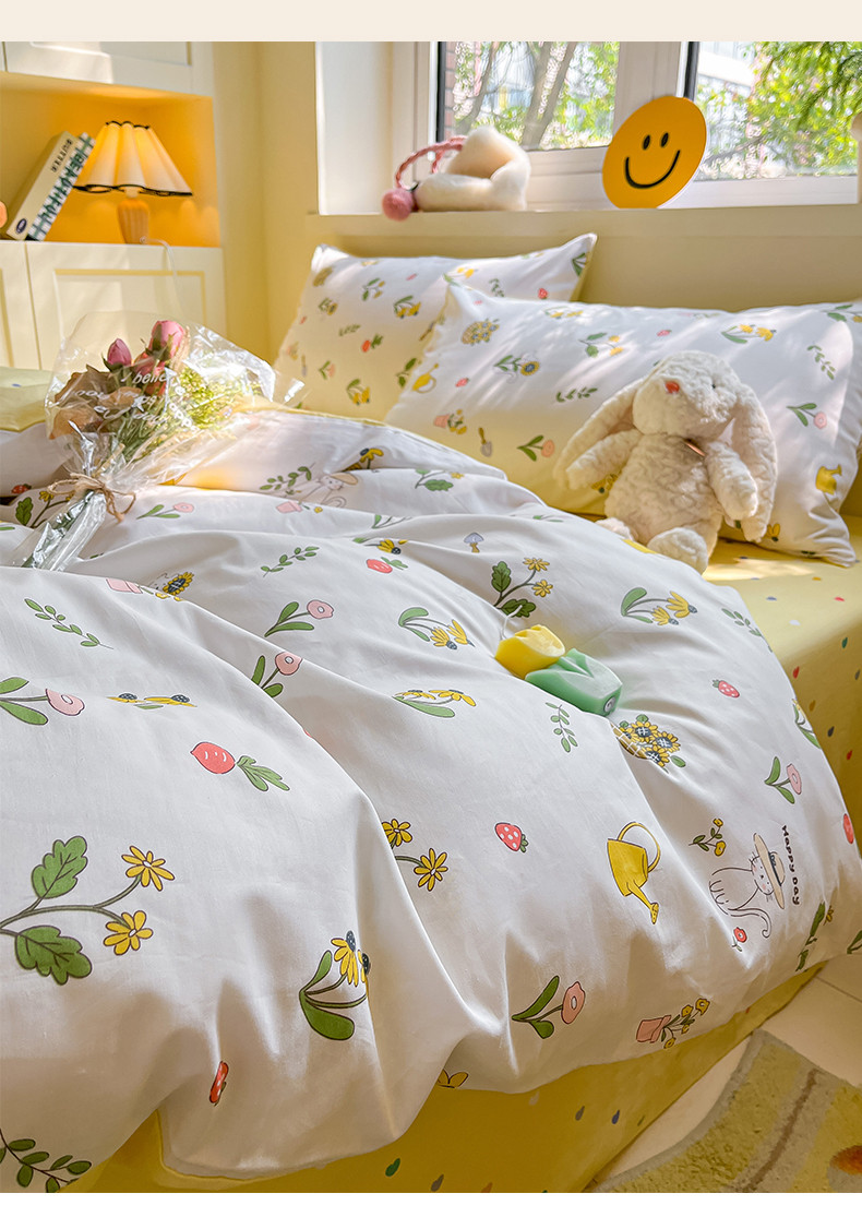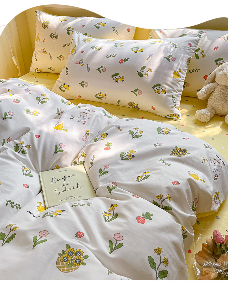 (总)798家纺 2025新款全棉130*70印花四件套-青春治愈系列,镜中花,半夏花语,黑白相间,蝴蝶小熊,花园奇遇,兔子花园,熊宝,叶魅,郁金香紫