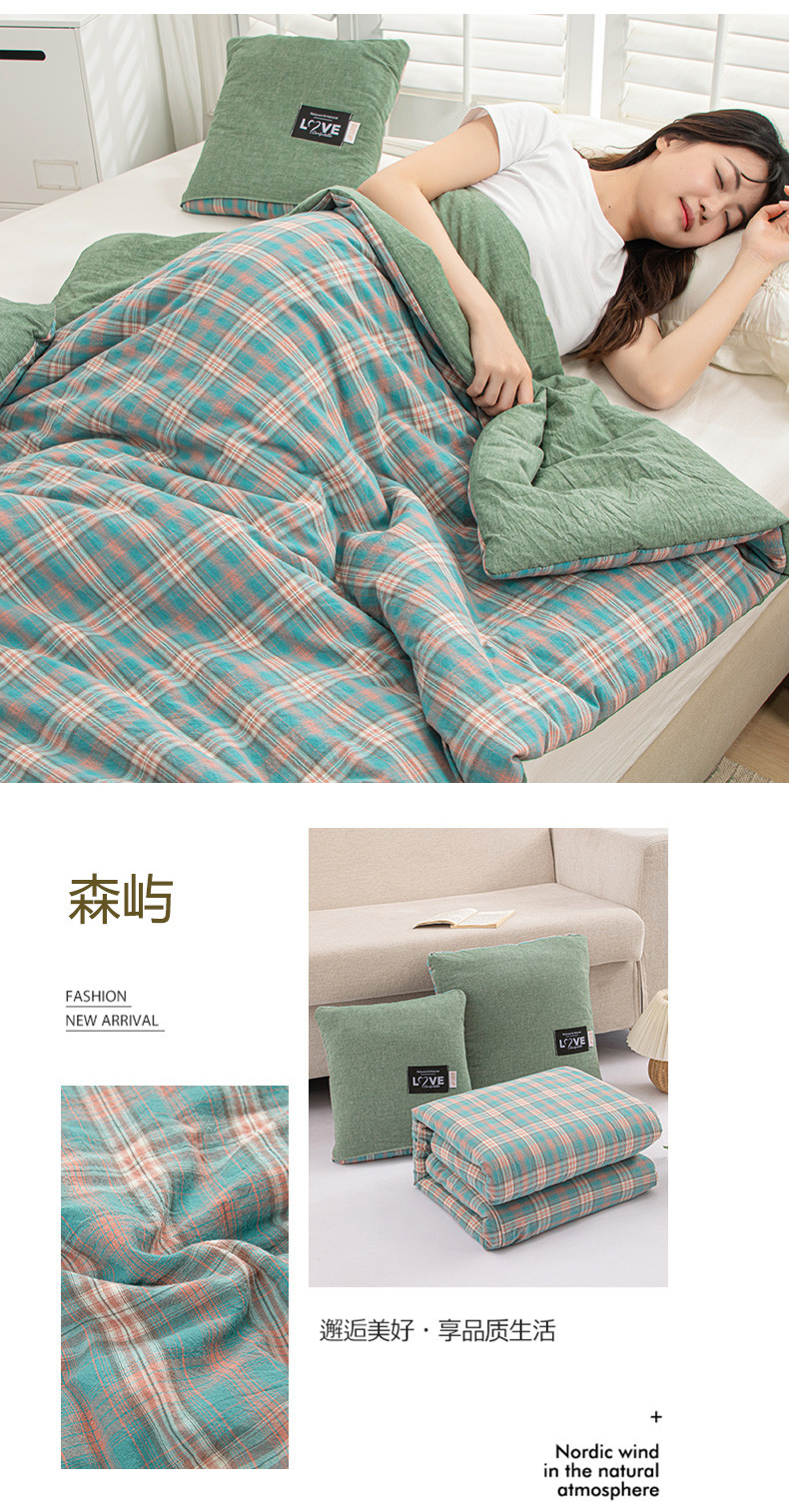 商品名称:翰轩家居 2023新款全棉色织水洗棉大豆抱枕被 森屿