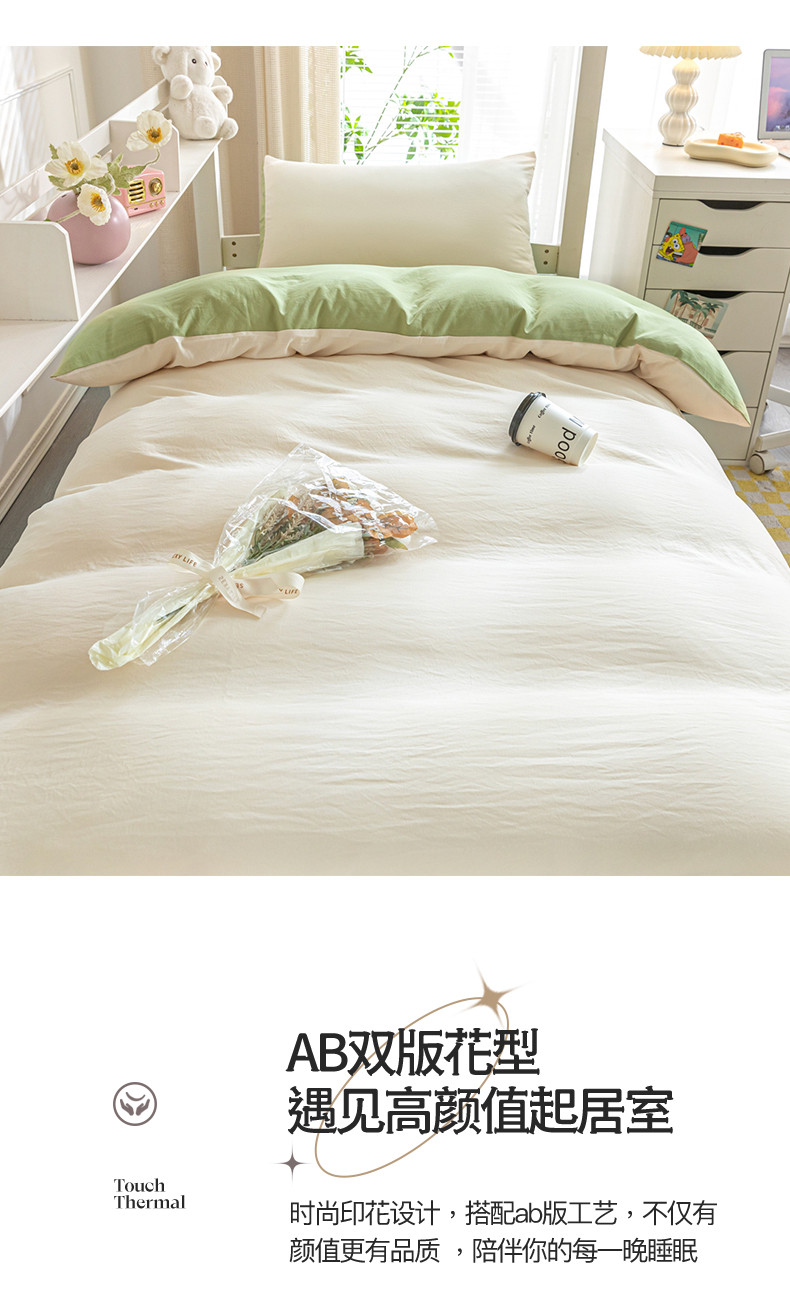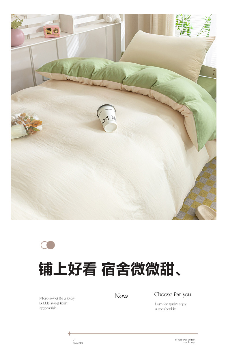 当前位置: 91家纺网 > 商品网购 > 床品套件 > 四件套 > 水洗棉四件套 > 古吉梦 2024新款纯色-双拼水洗棉学生三件套 纯色-奶昔白+果绿