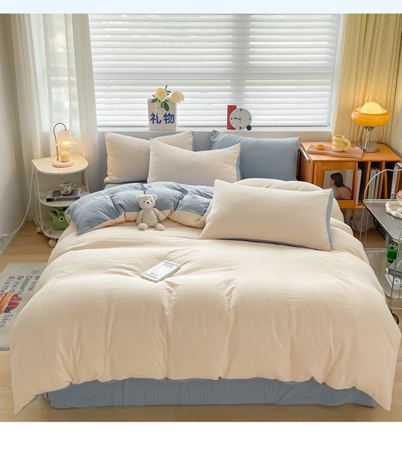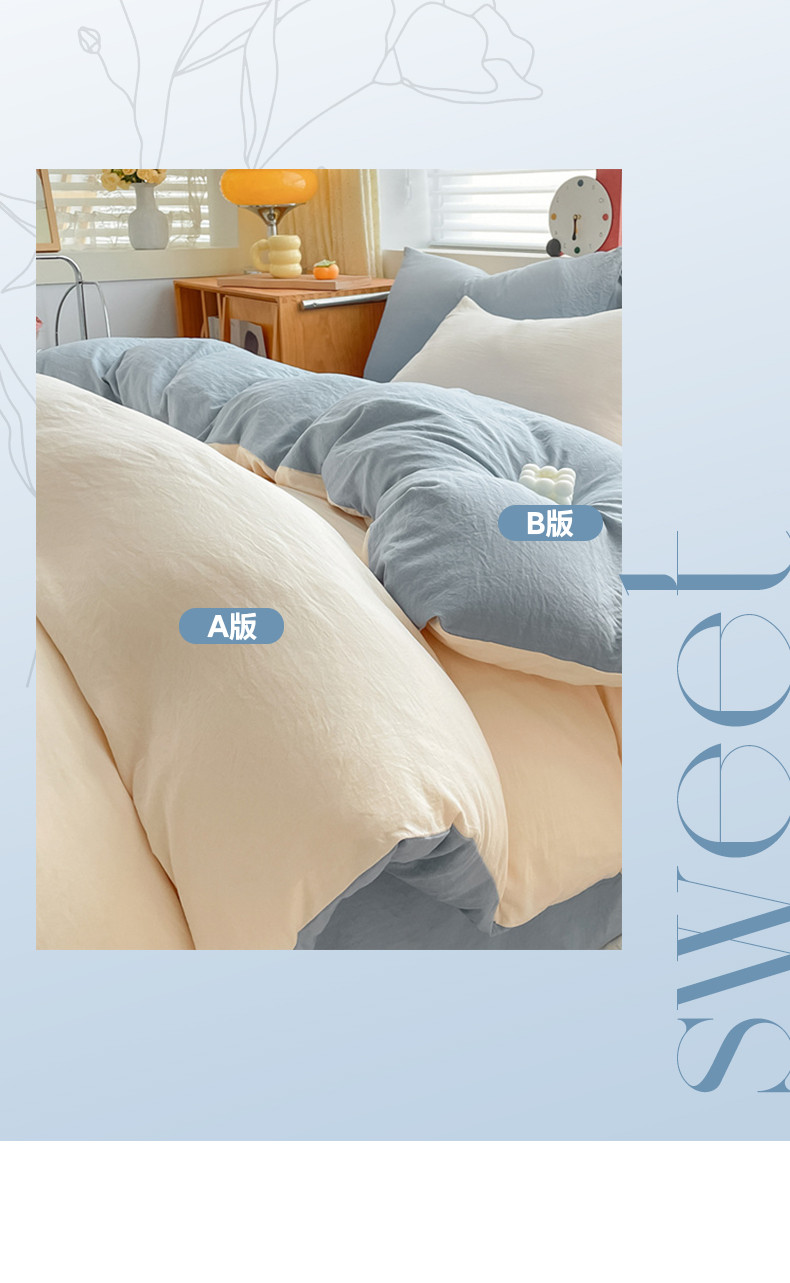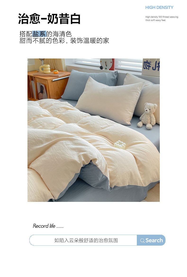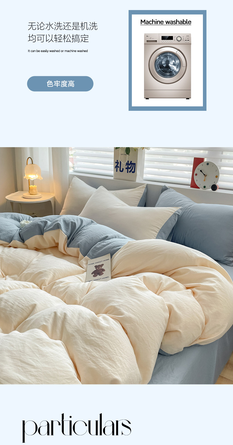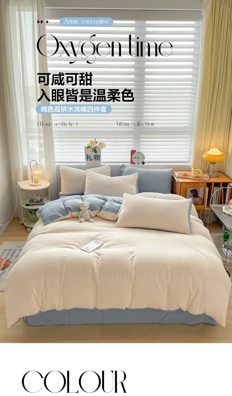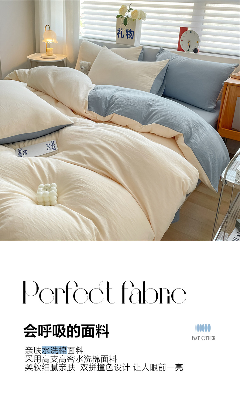 当前位置: 91家纺网 > 商品网购 > 床品套件 > 四件套 > 水洗棉四件套 > 古吉梦 2023新款纯色-双拼水洗棉四件套 纯色-奶昔白+海青