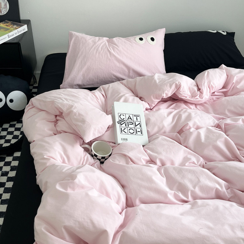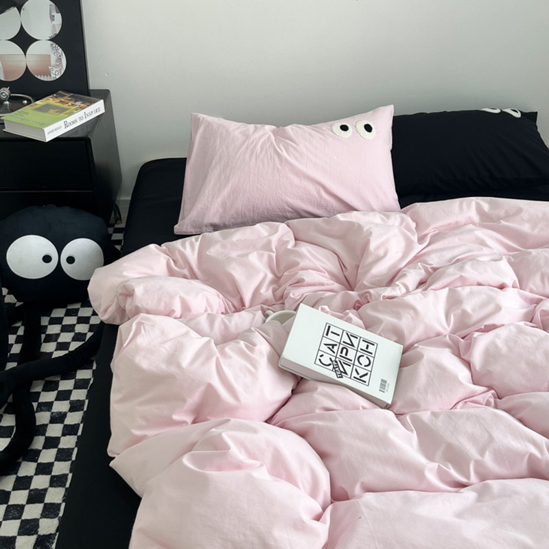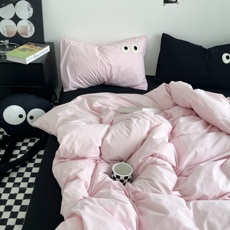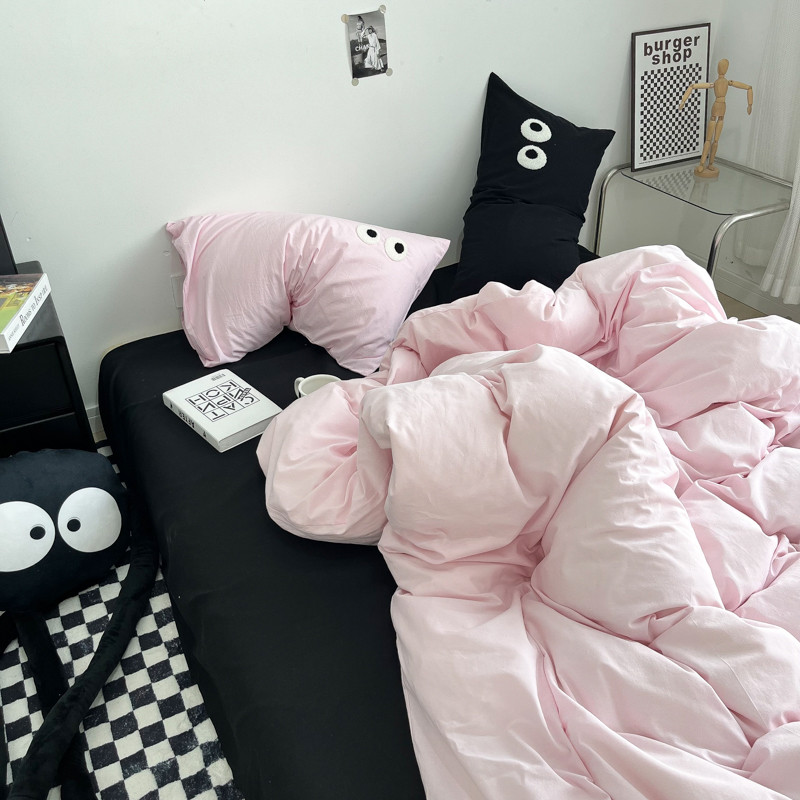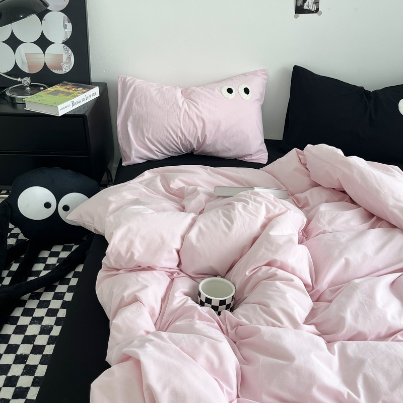 当前位置: 91家纺网 > 商品网购 > 床品套件 > 四件套 > 水洗棉四件套 > 盼季家纺 2023新款纯色水洗棉大眼睛煤球四件套 大眼-奶粉+黑