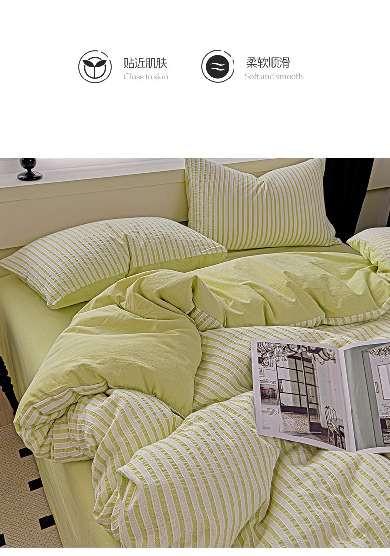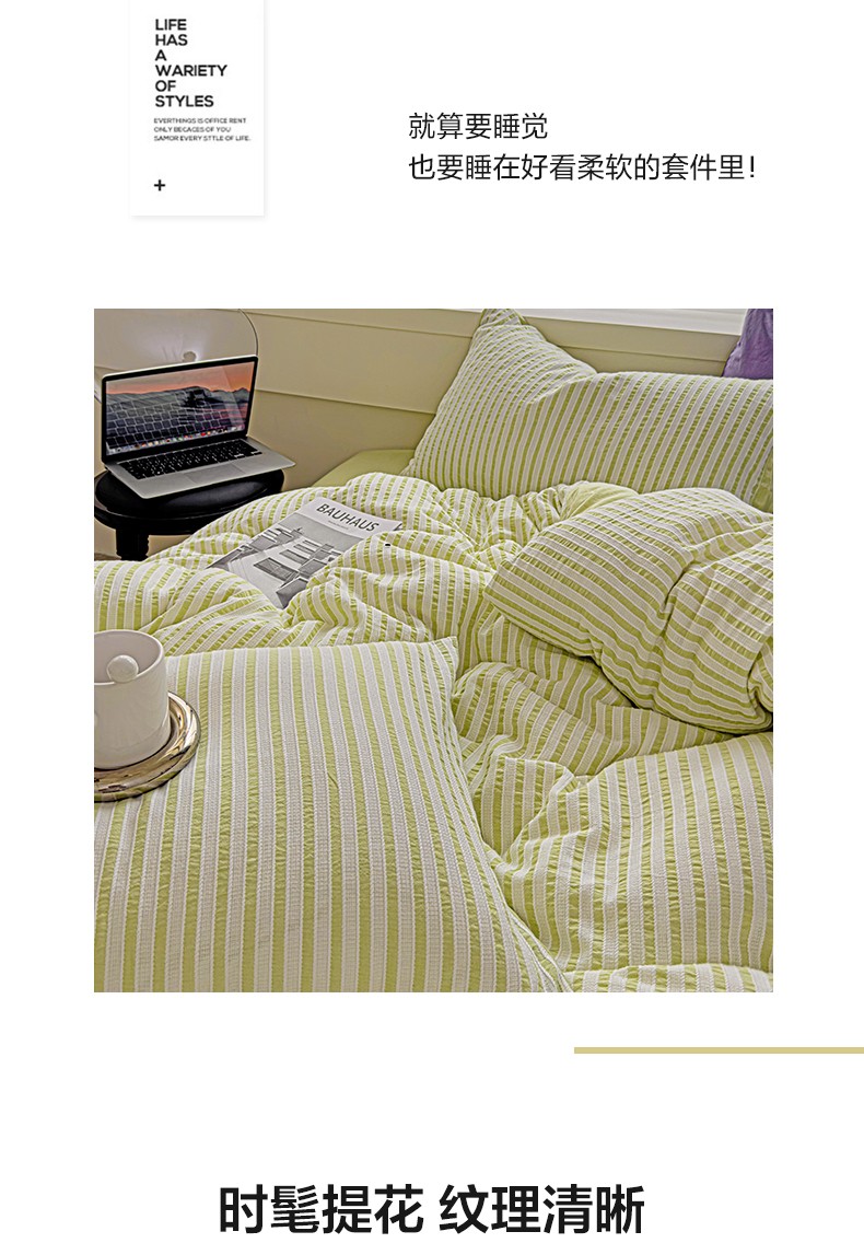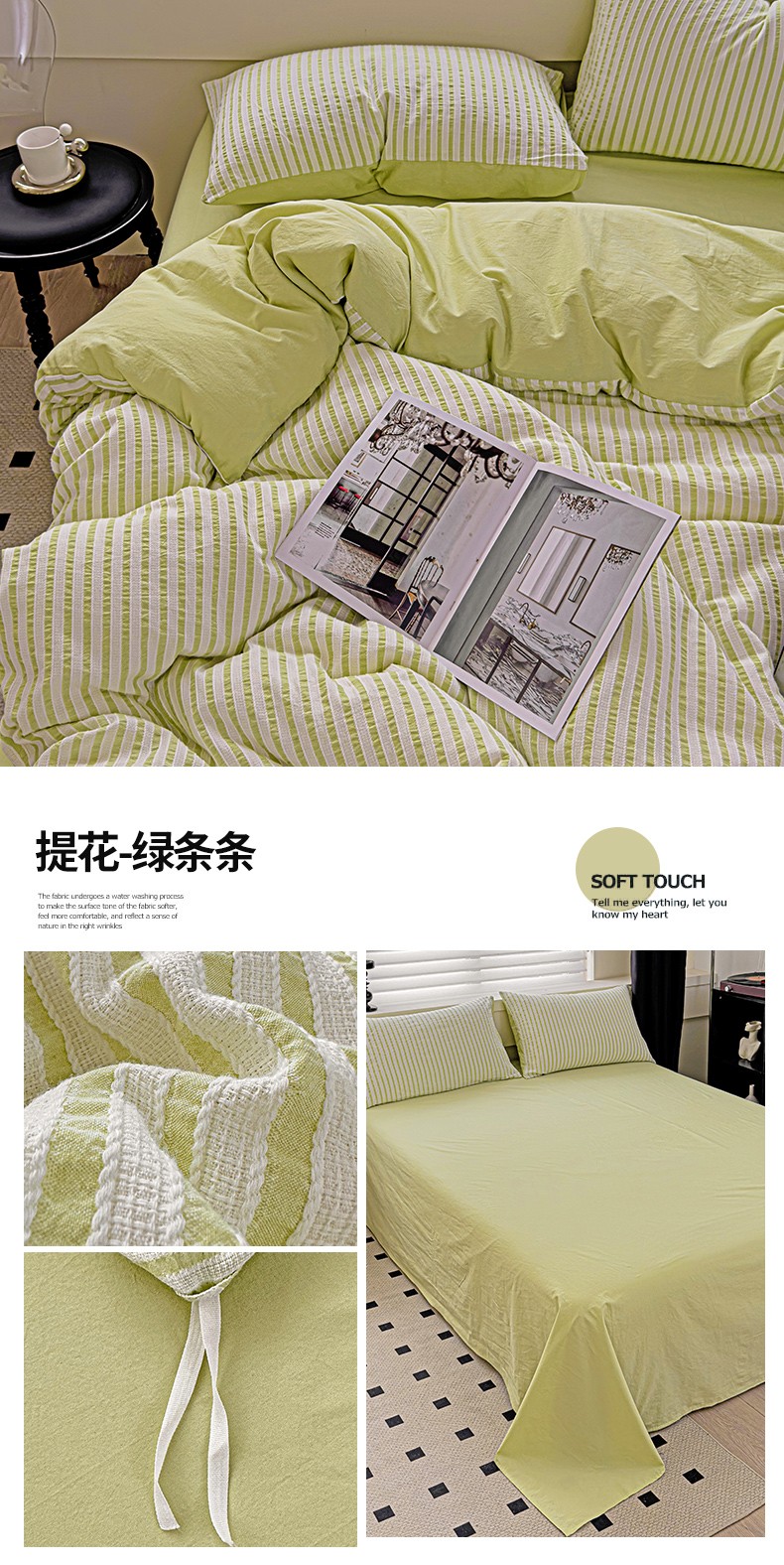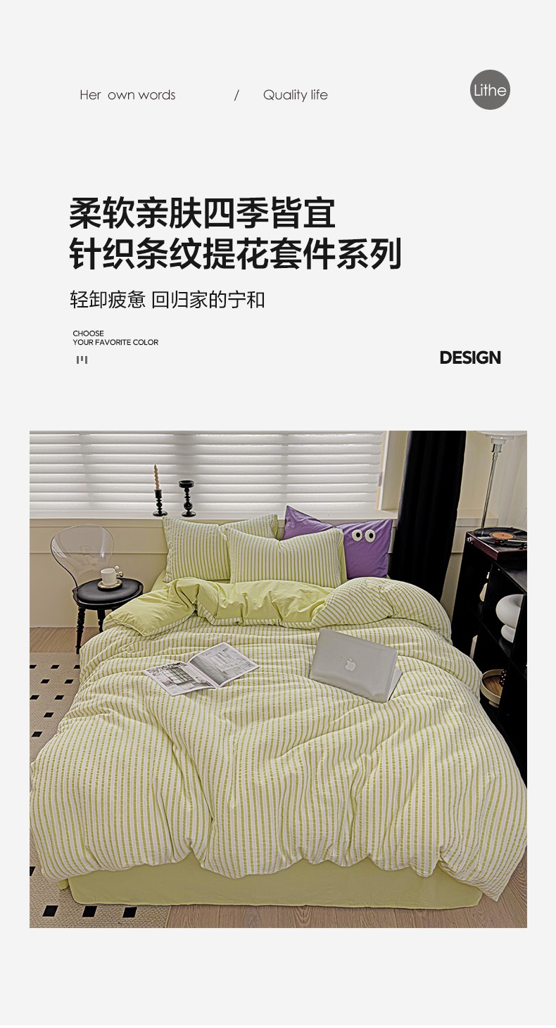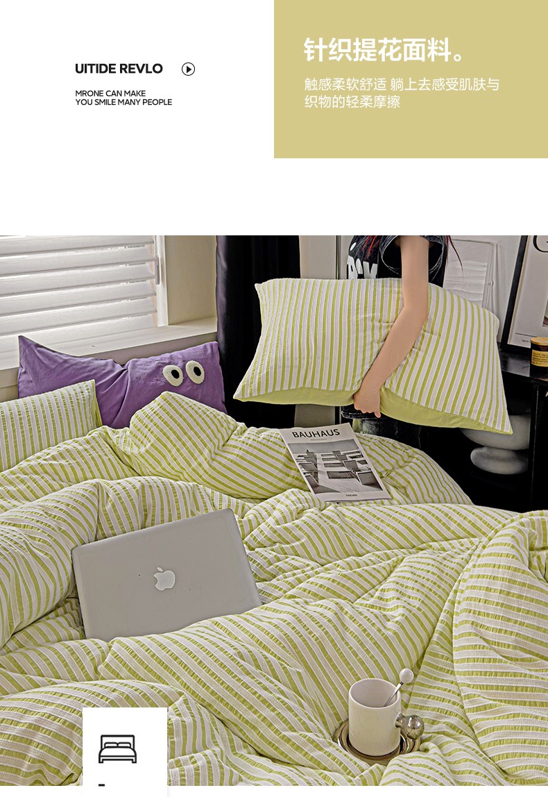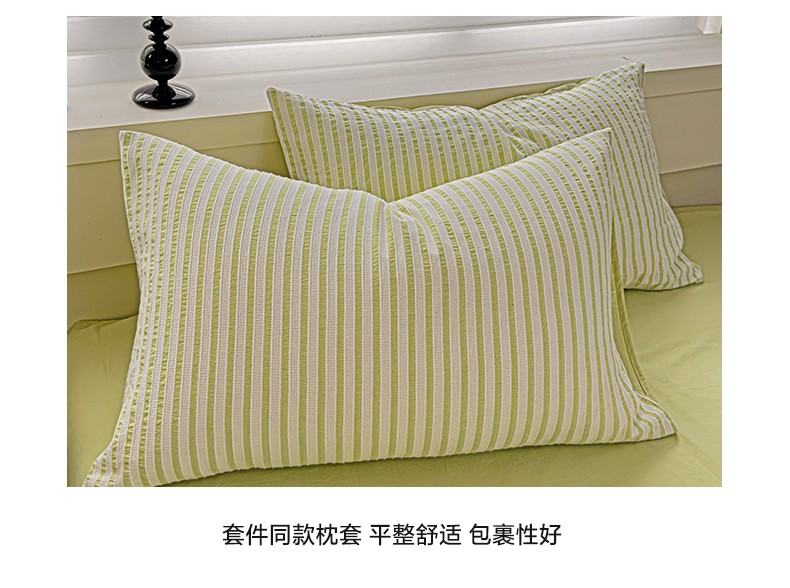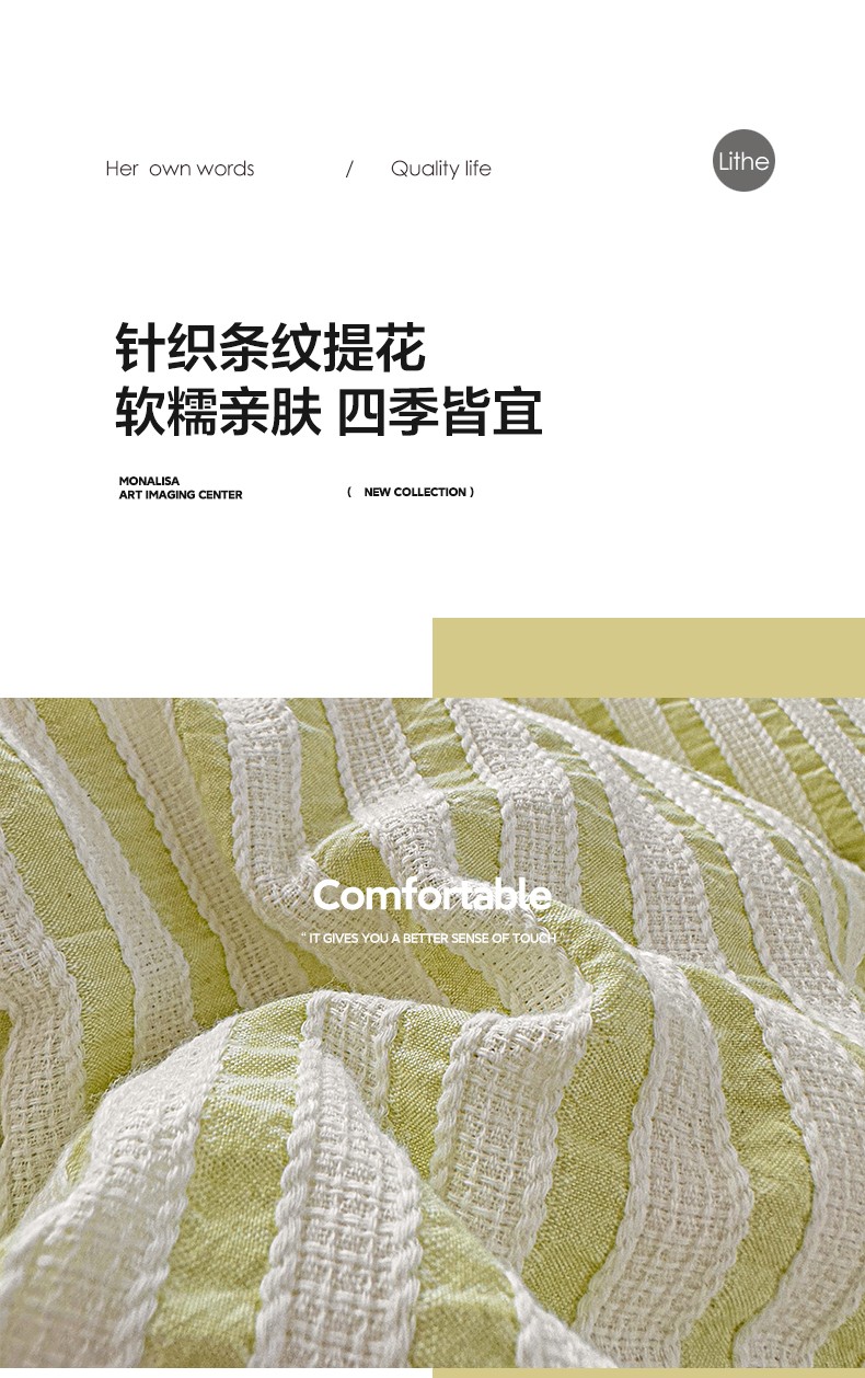 商品名称:水墨江南 2023新款纯色提花针织条四件套 提花-绿条条