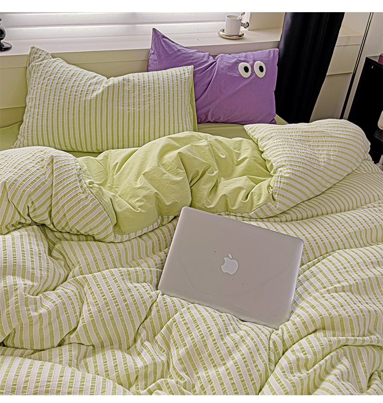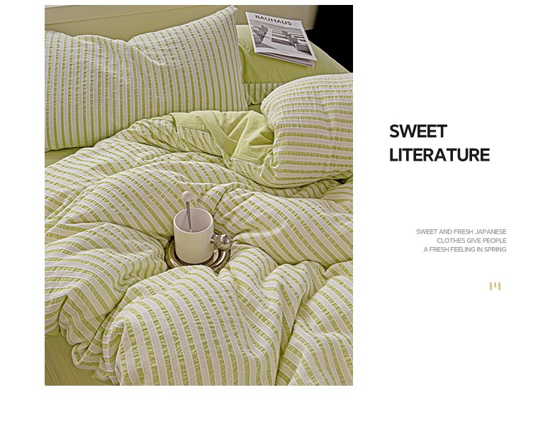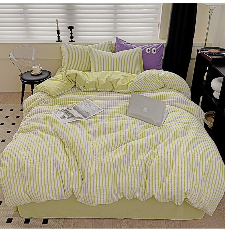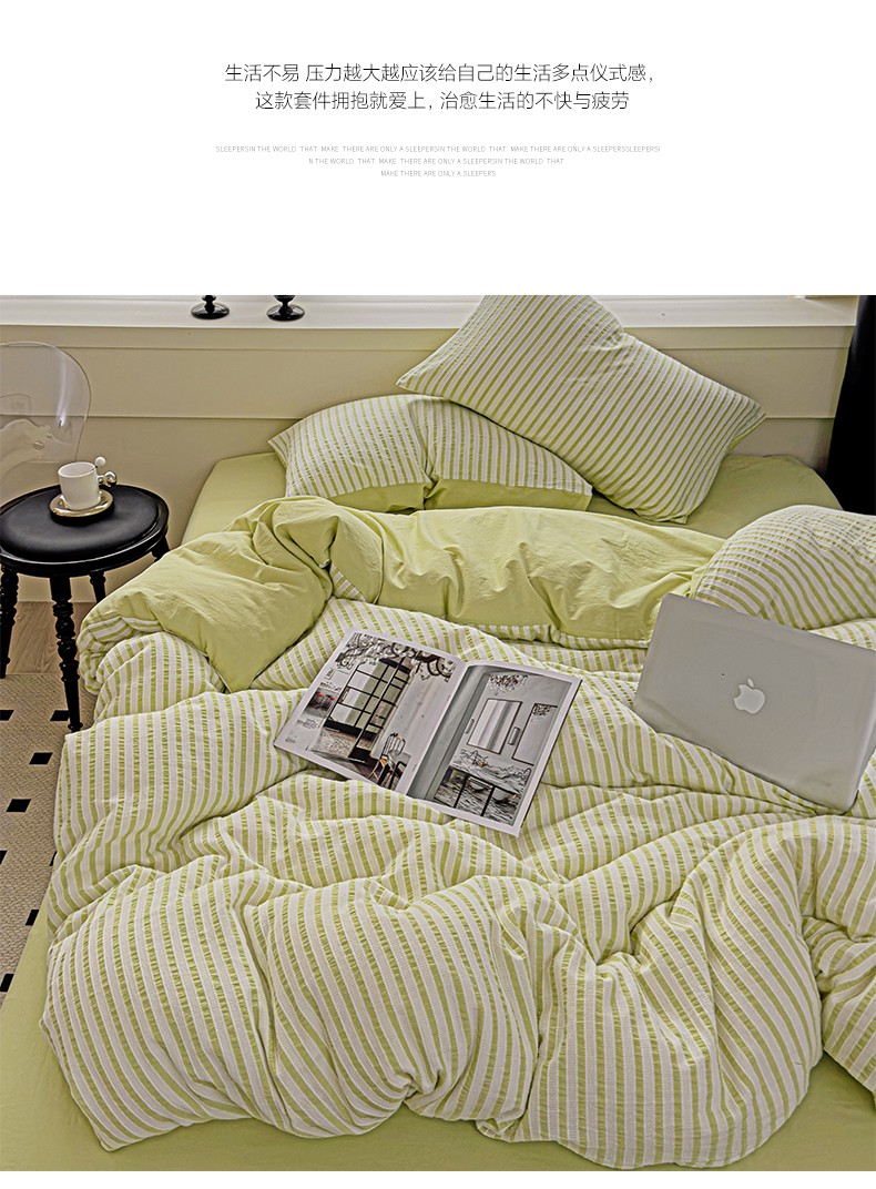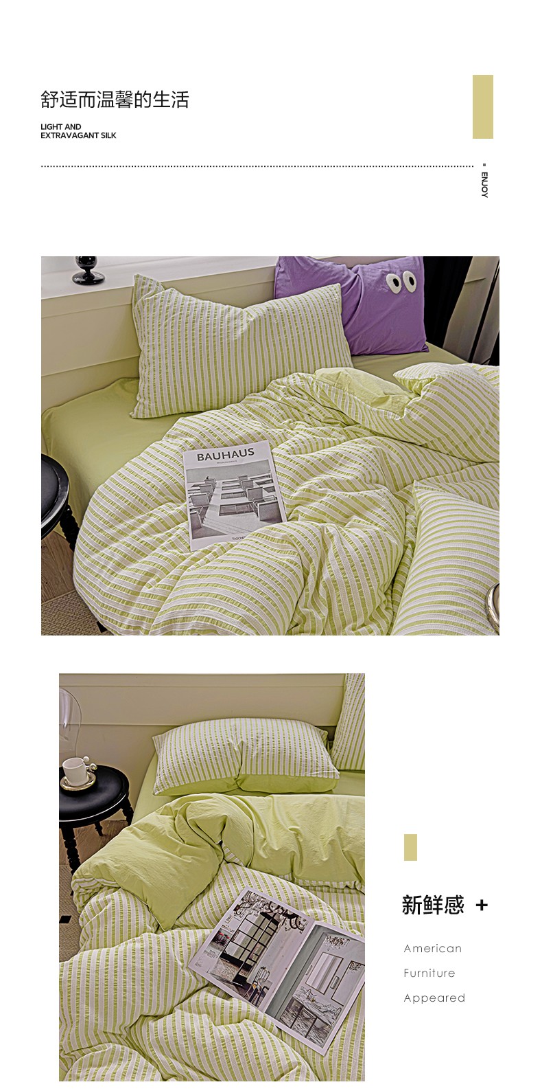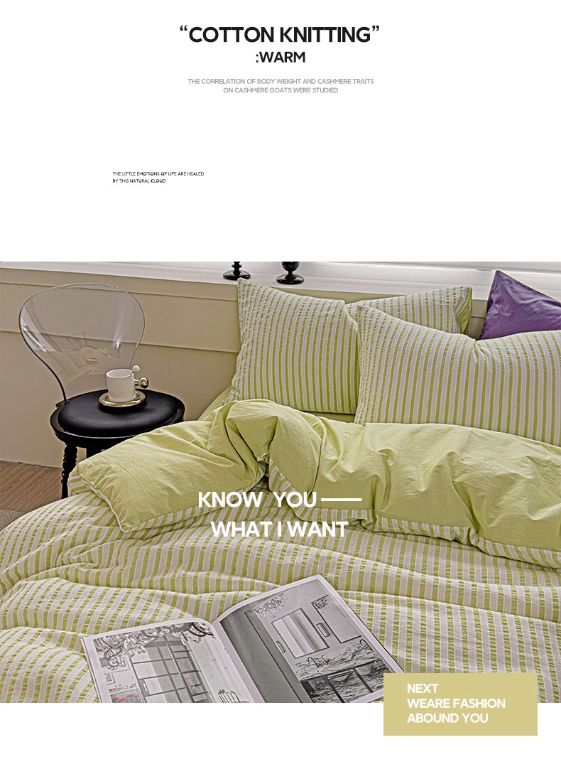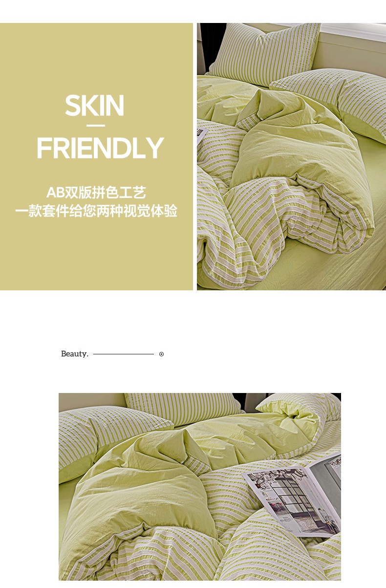 商品名称:水墨江南 2023新款纯色提花针织条四件套 提花-绿条条