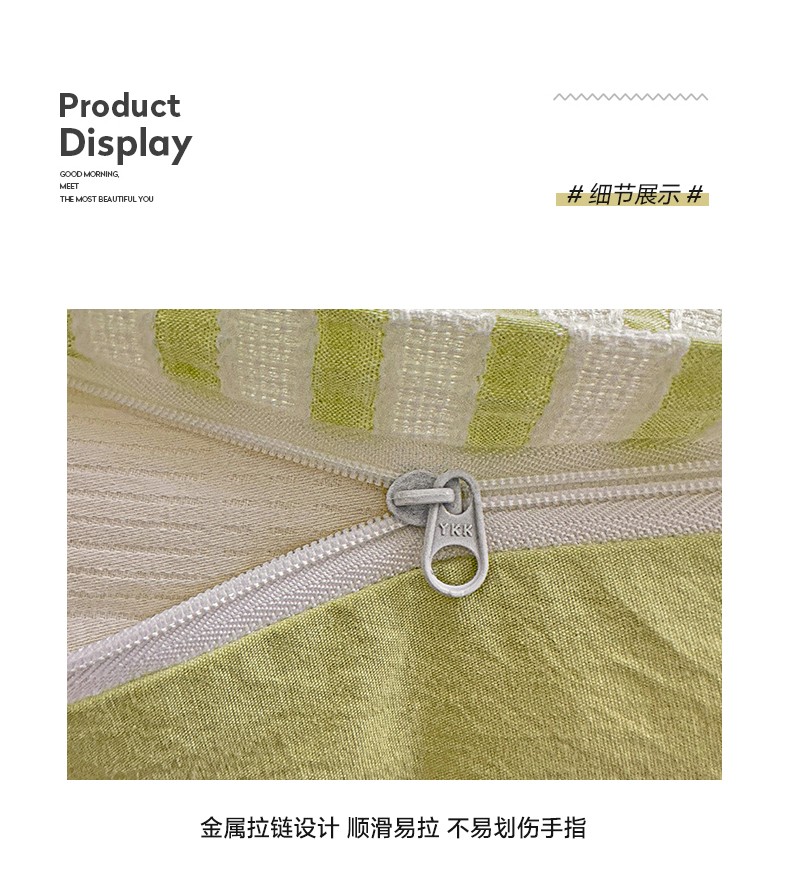 水墨江南 2023新款纯色提花针织条四件套 提花-绿条条