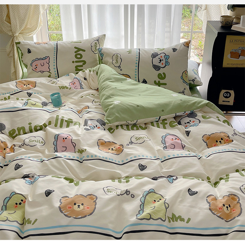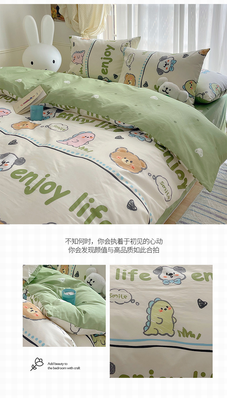 桃子 2023新款ins韩系少女心碎花小清新卡通纯棉系列四件套 棉-哈哈乐园