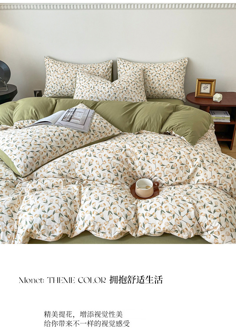 一比一 2023直播爆款超柔提花小竺棉法式复古亲肤水洗四件套小春野