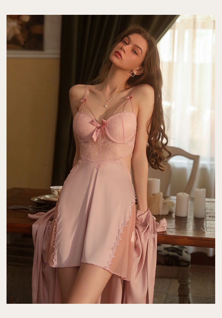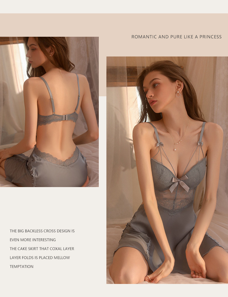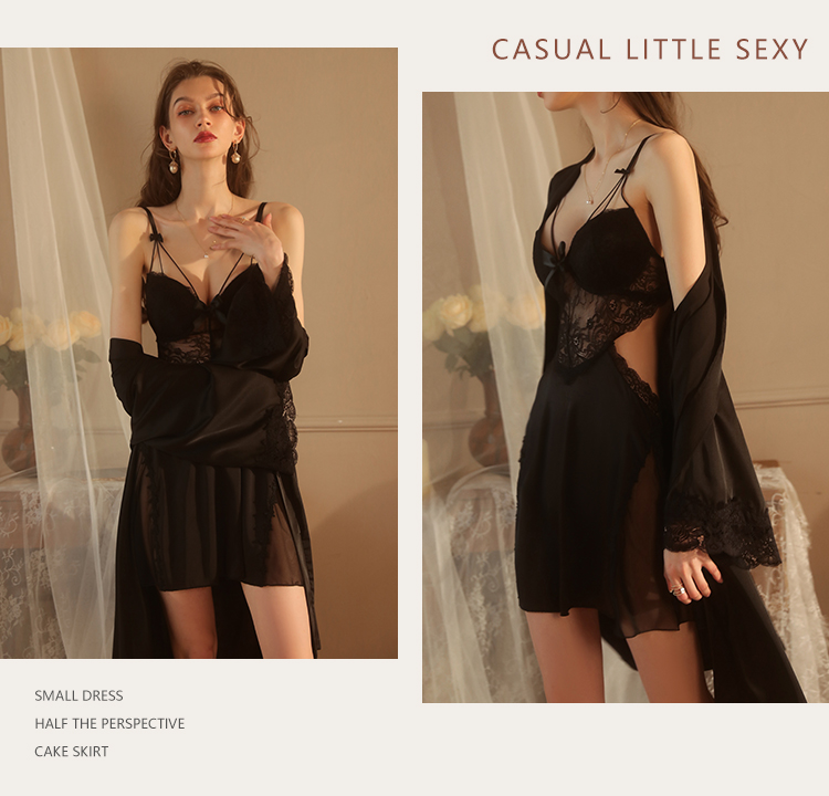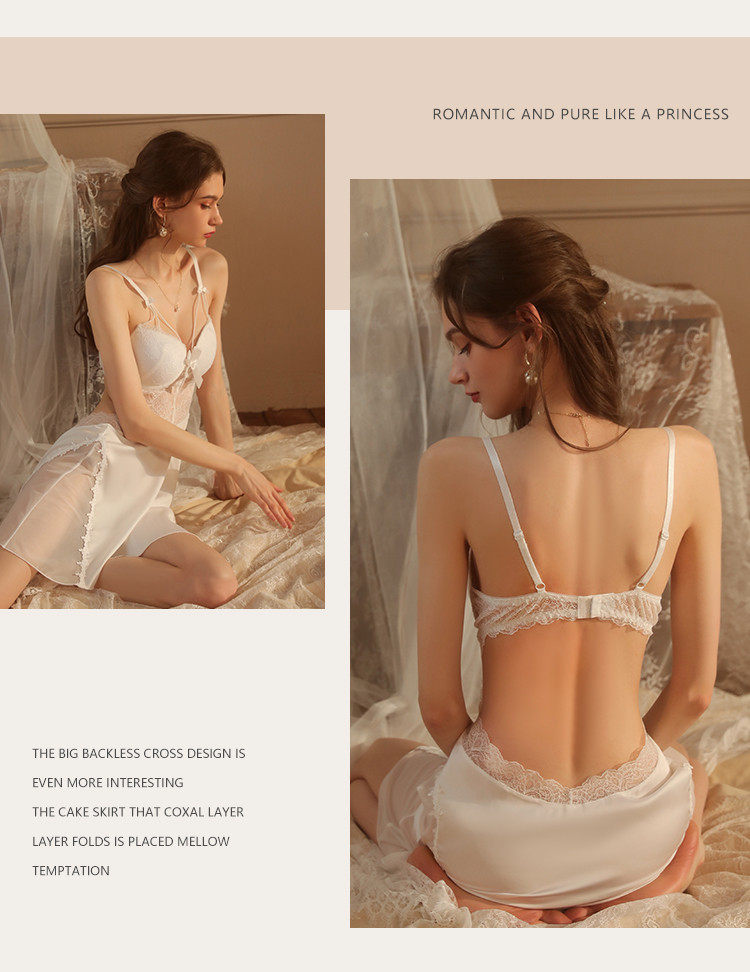 洛兰沙 2023新款外贸冰丝蕾丝吊带和两件套-2044欧拉 白色