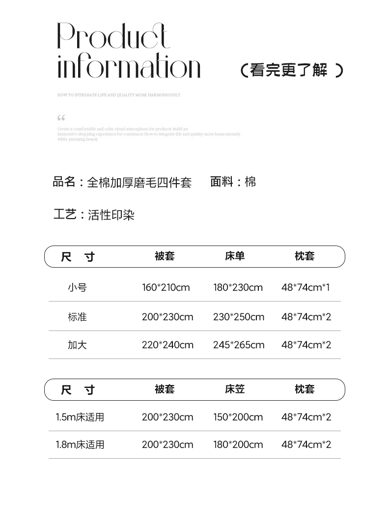 1.8m被套加大床笠款四件套 | ¥125.00 |