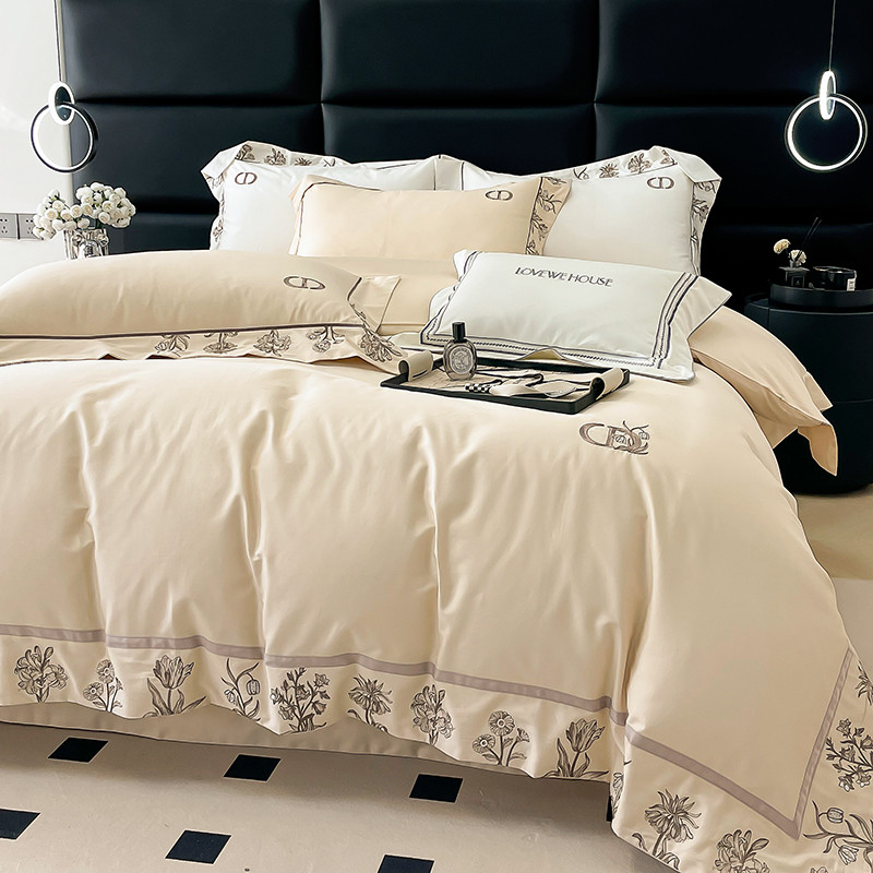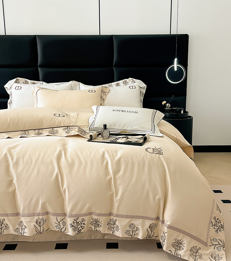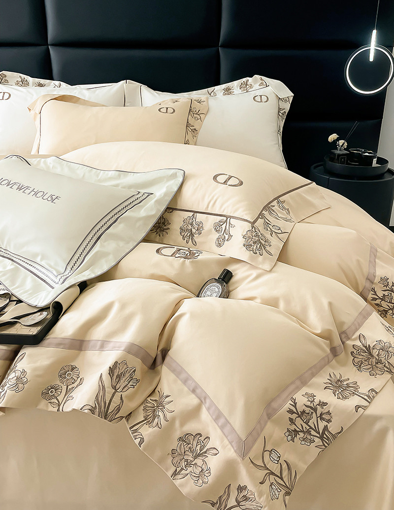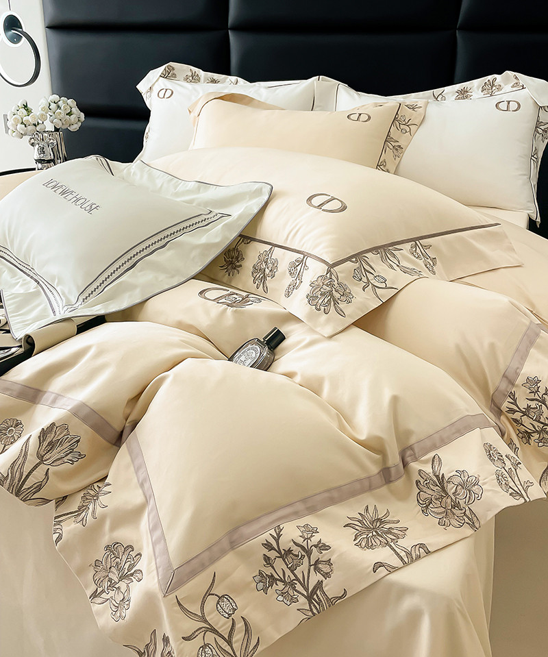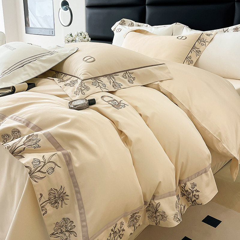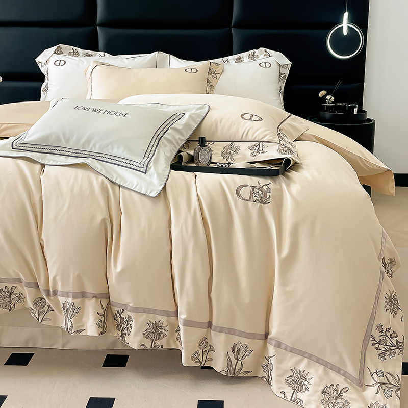 若未 2023新款50支长绒棉棉织带款高精密刺绣四件套-诗雅-米驼色
