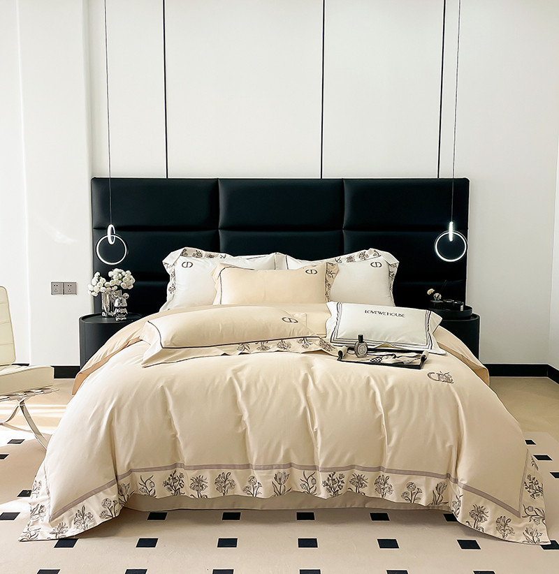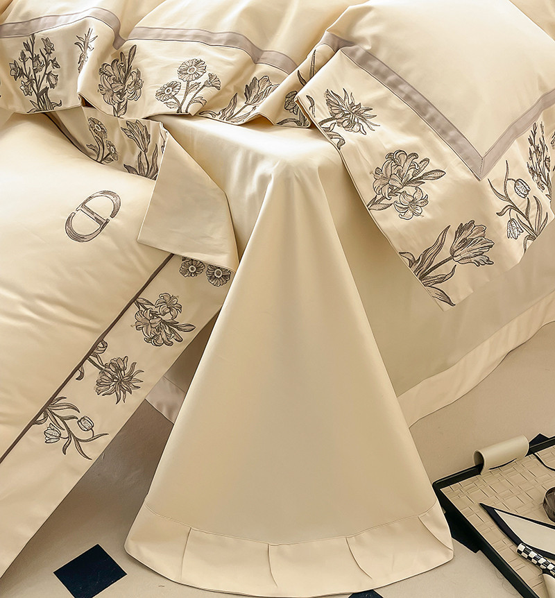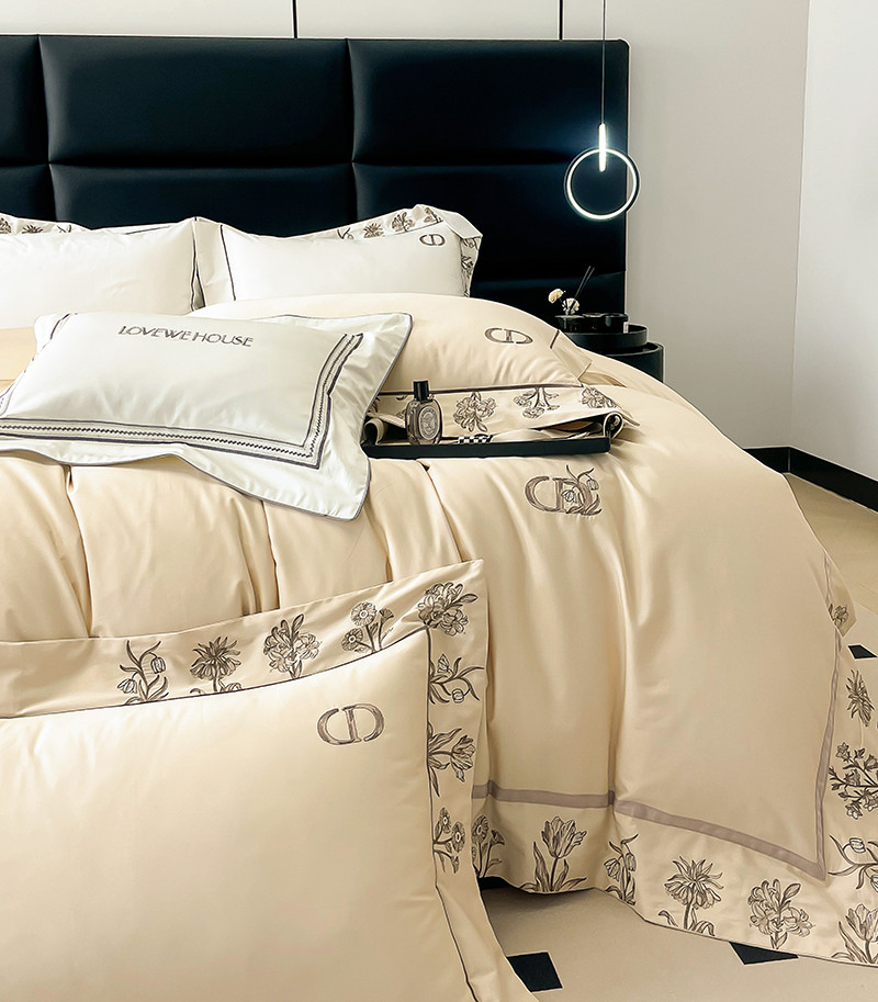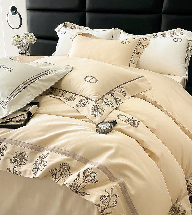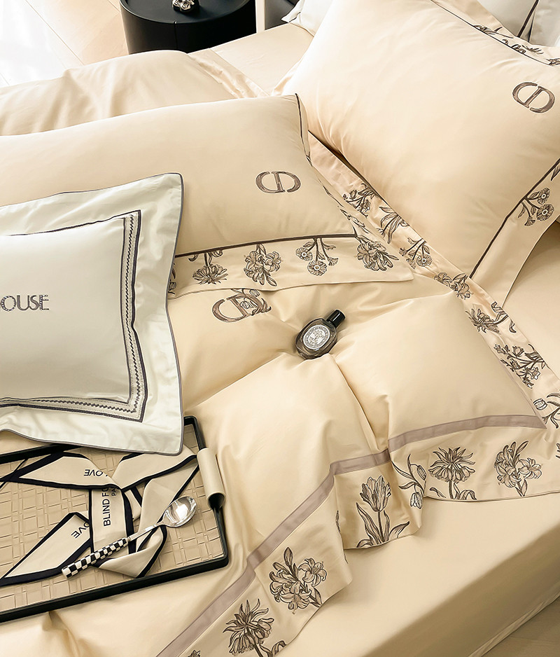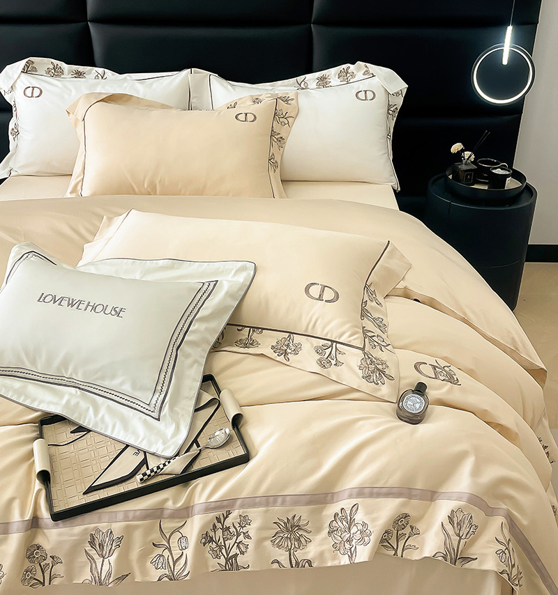 若未 2023新款50支长绒棉棉织带款高精密刺绣四件套-诗雅-米驼色