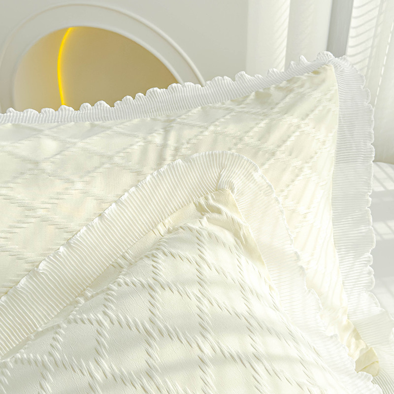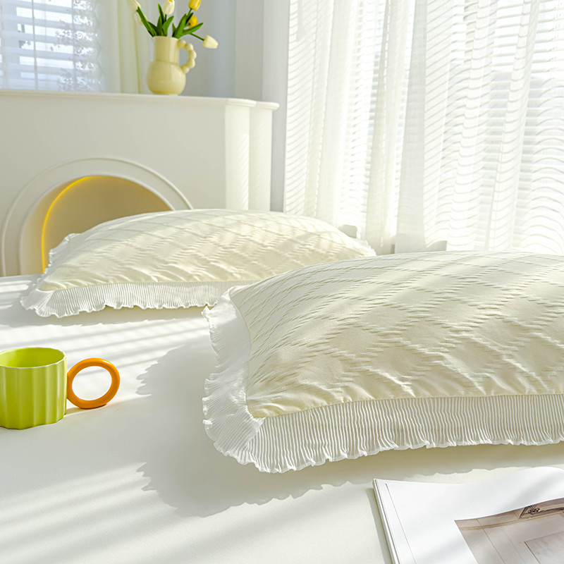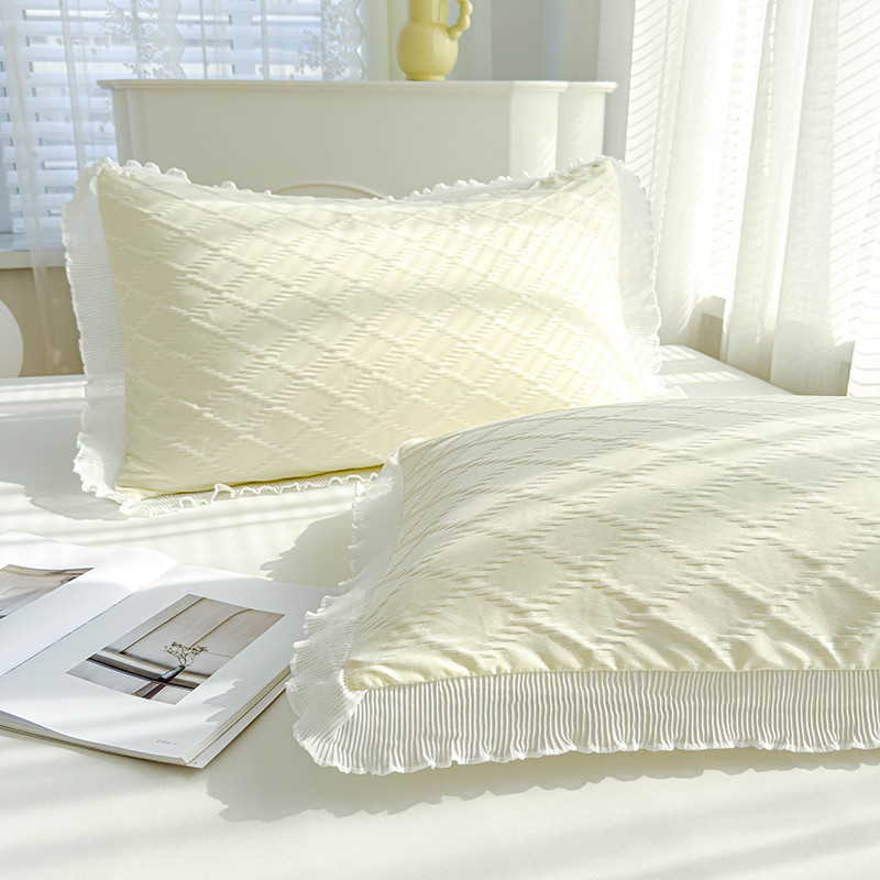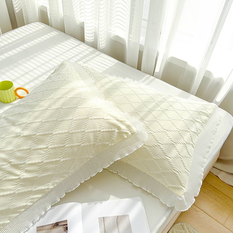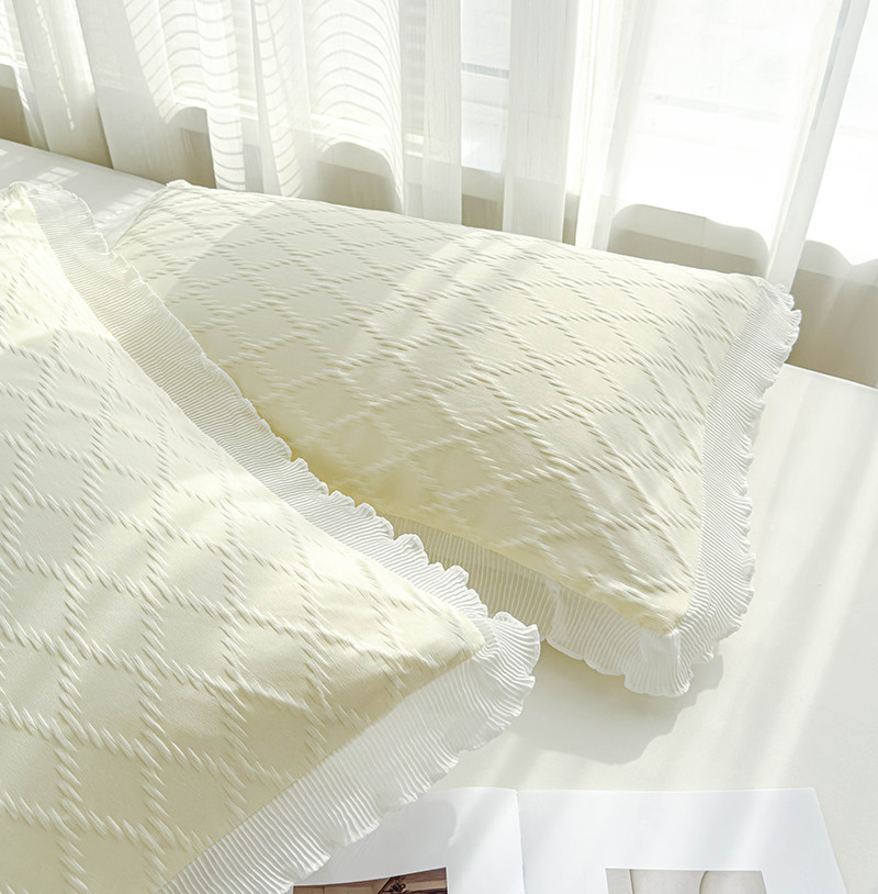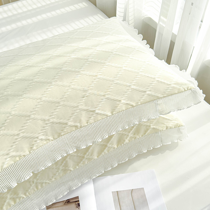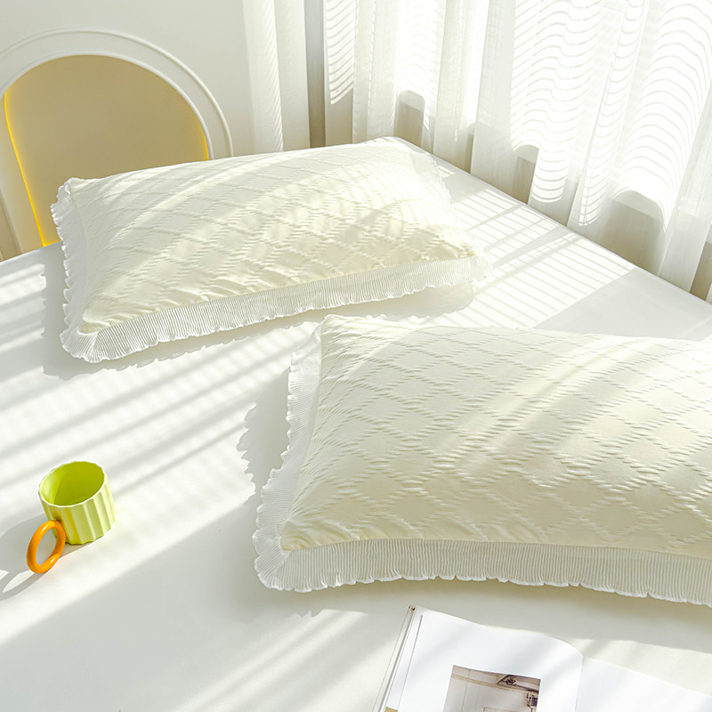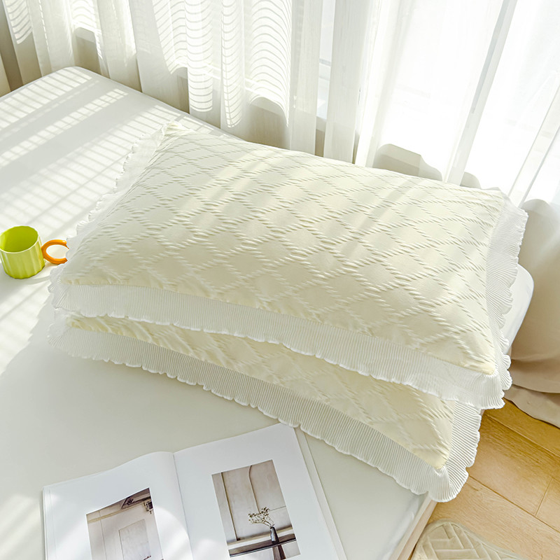 蓝冰家纺 2023新款A类泡泡纱提花枕套 清新米