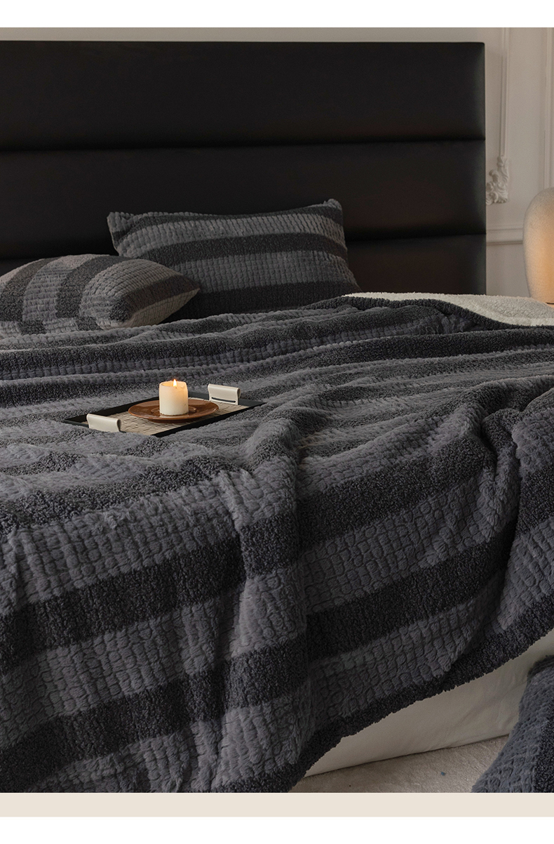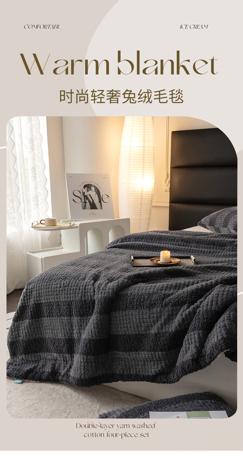 (总)网客家纺 2025新款羊毛绒牛奶绒夹棉床盖四件套,豹点-深灰,简格-黑色,简格-咖色,空间-红色,泥点-灰色,泥点-咖色,维奥-灰色,斜格-灰色,斜格-墨绿
