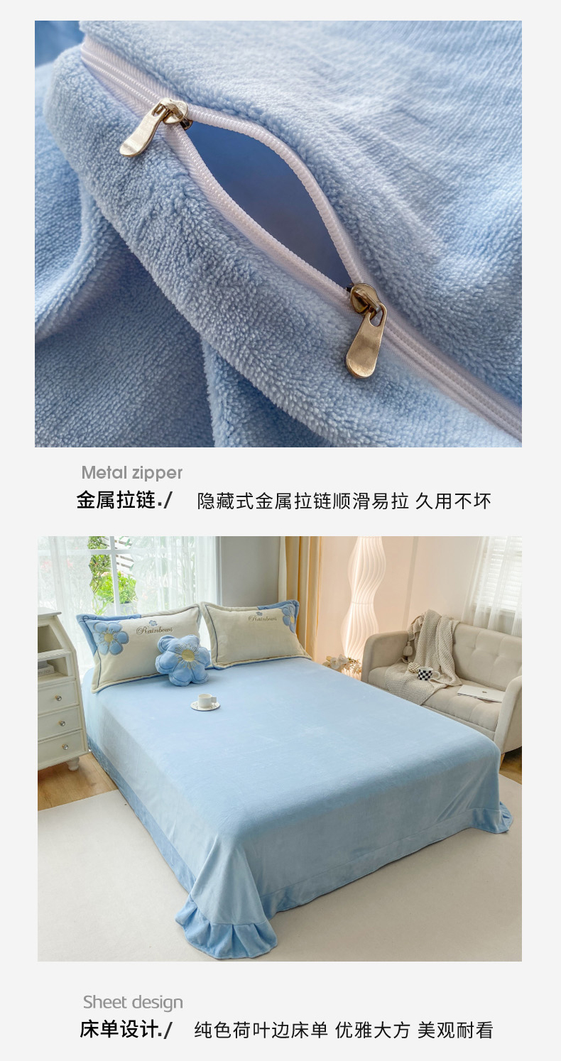 金窝窝家纺 2024新款重工刺绣280克A类婴儿牛奶绒刺绣四件套系列-向阳花开 向阳花开—蓝