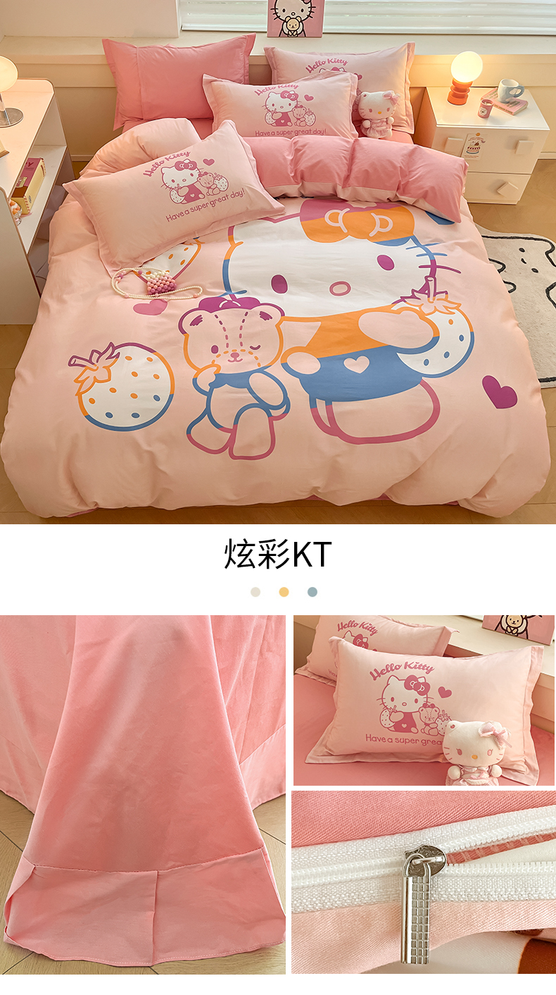 当前位置: 91家纺网 > 商品网购 > 床品套件 > 四件套 > 全棉普通四件套 > 孩子王家纺 2023新款三丽鸥系列全棉活性大版印花卡通学生四件套 炫彩KT