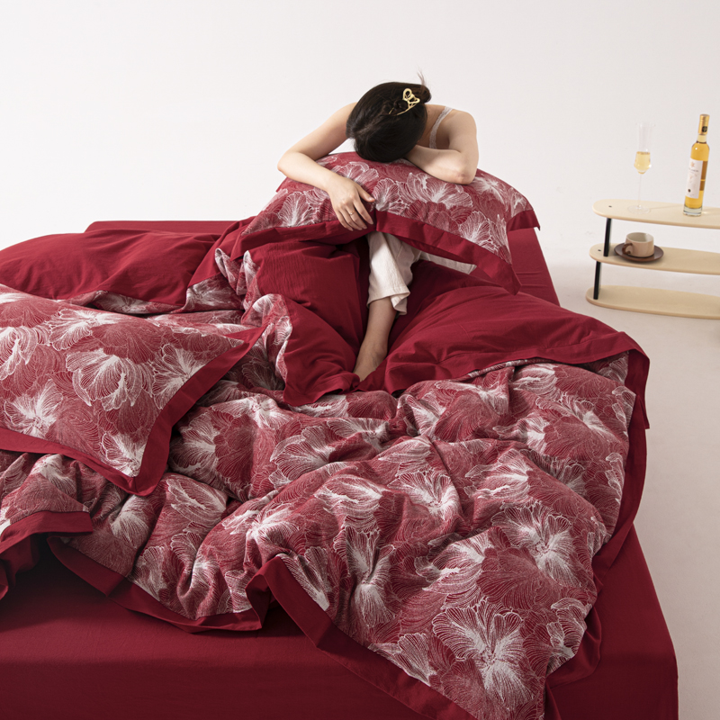 商品名称:(总)安莱生活 2023新款花海系列色织双层纱工艺款宽边高奢四件套