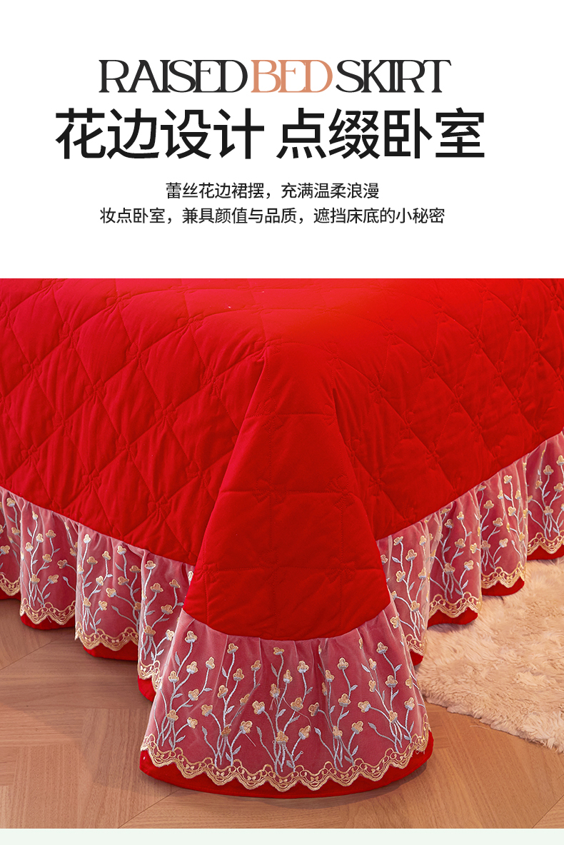 (总)恒爱 2022秋冬水晶绒翩翩花舞夹棉床裙四件套,大红色,豆沙红,橄榄绿,公主粉,桔色,咖啡色,孔雀绿,拉菲红,罗兰紫,玫红色,美人玉,米白色,米驼色,抹茶绿,浅灰色,紫色