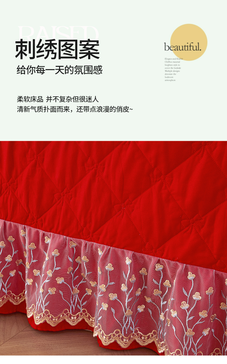 (总)恒爱 2022秋冬水晶绒翩翩花舞夹棉单床裙,大红色,豆沙红,橄榄绿,公主粉,桔色,咖啡色,孔雀绿,拉菲红,罗兰紫,玫红色,美人玉,米白色,米驼色,抹茶绿,浅灰色,紫色