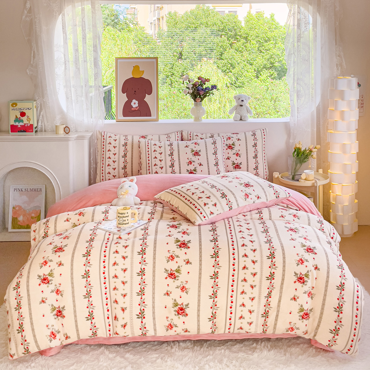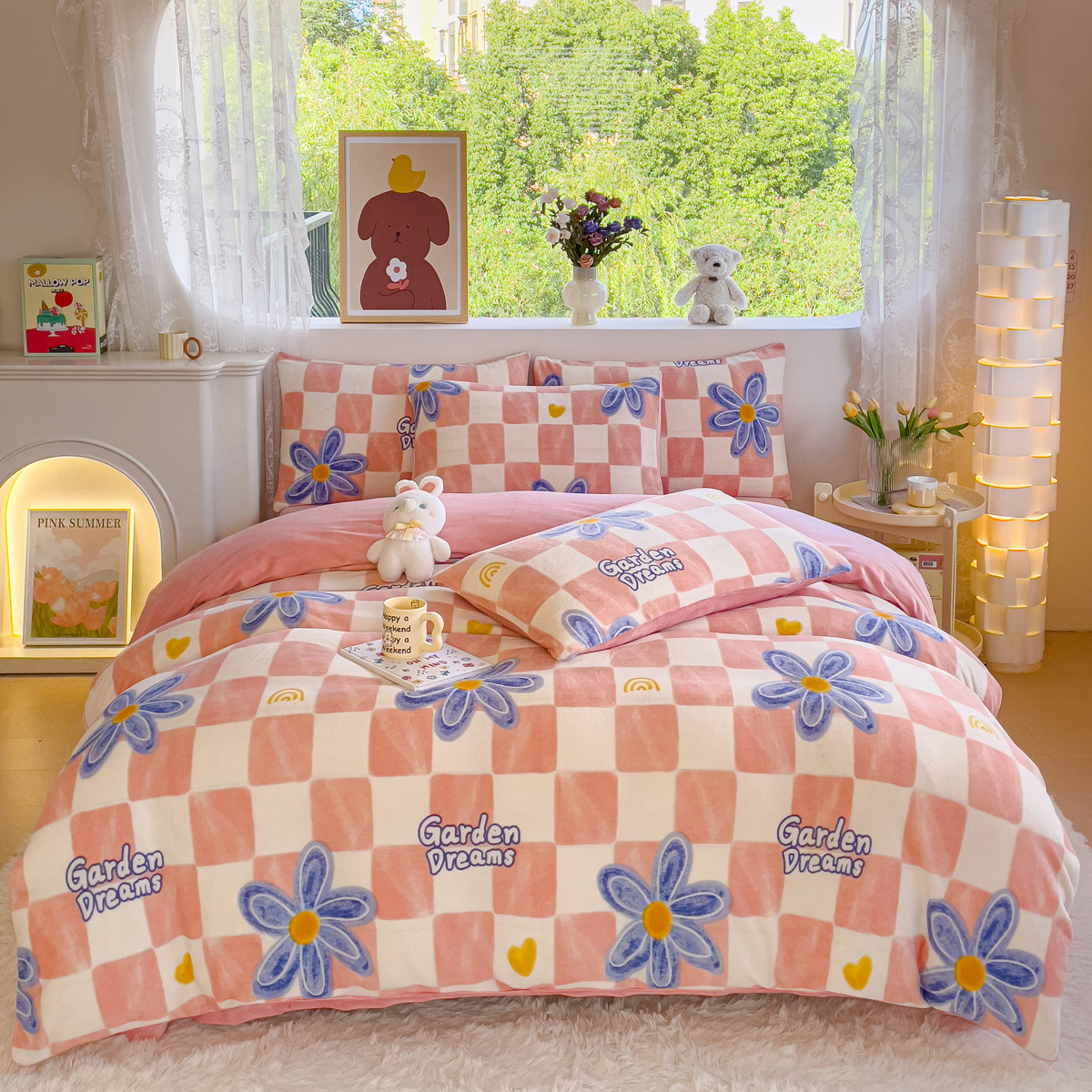 商品名称:(总)晚安 2024新款小清新印花牛奶绒大版花牛奶绒四件套