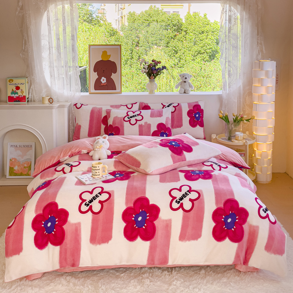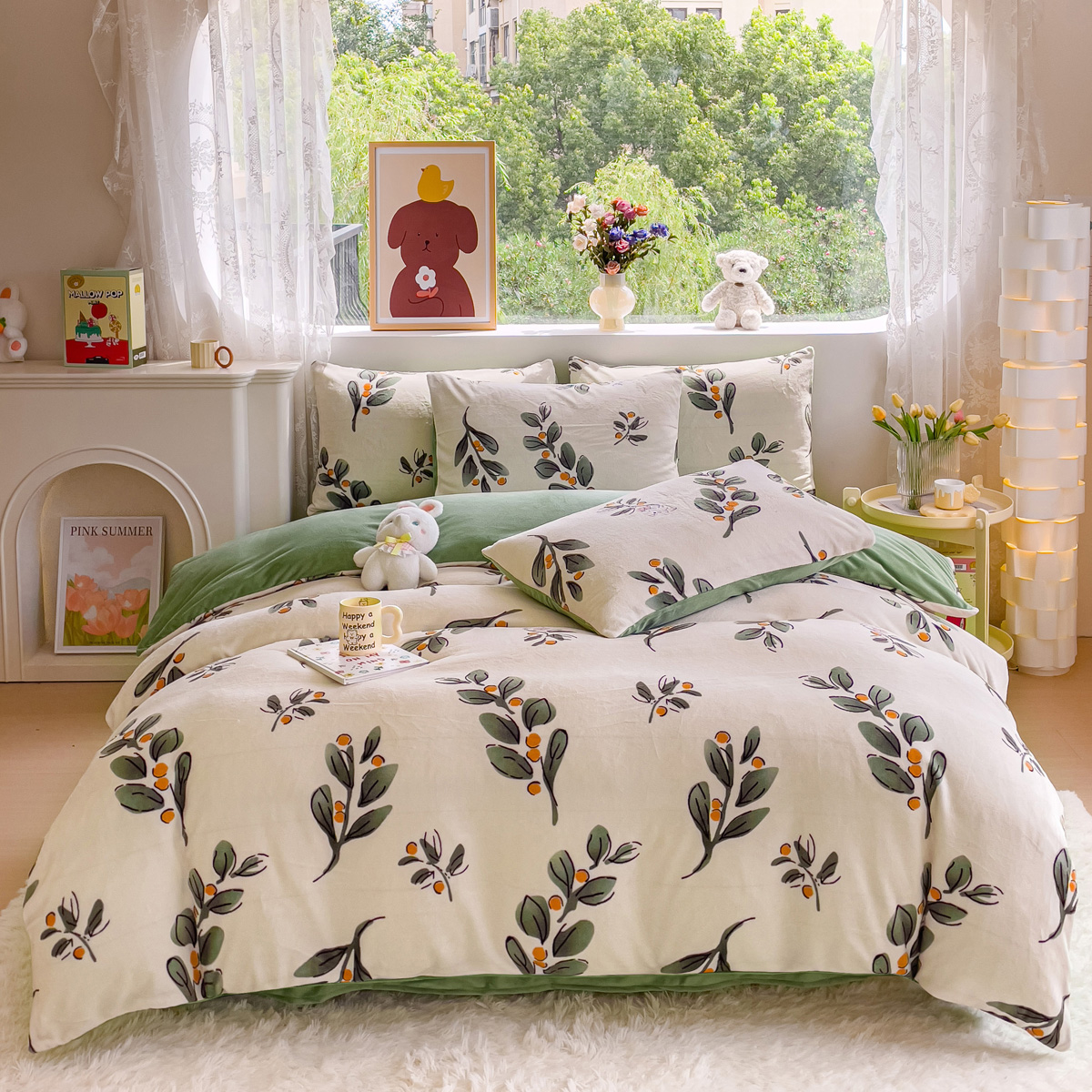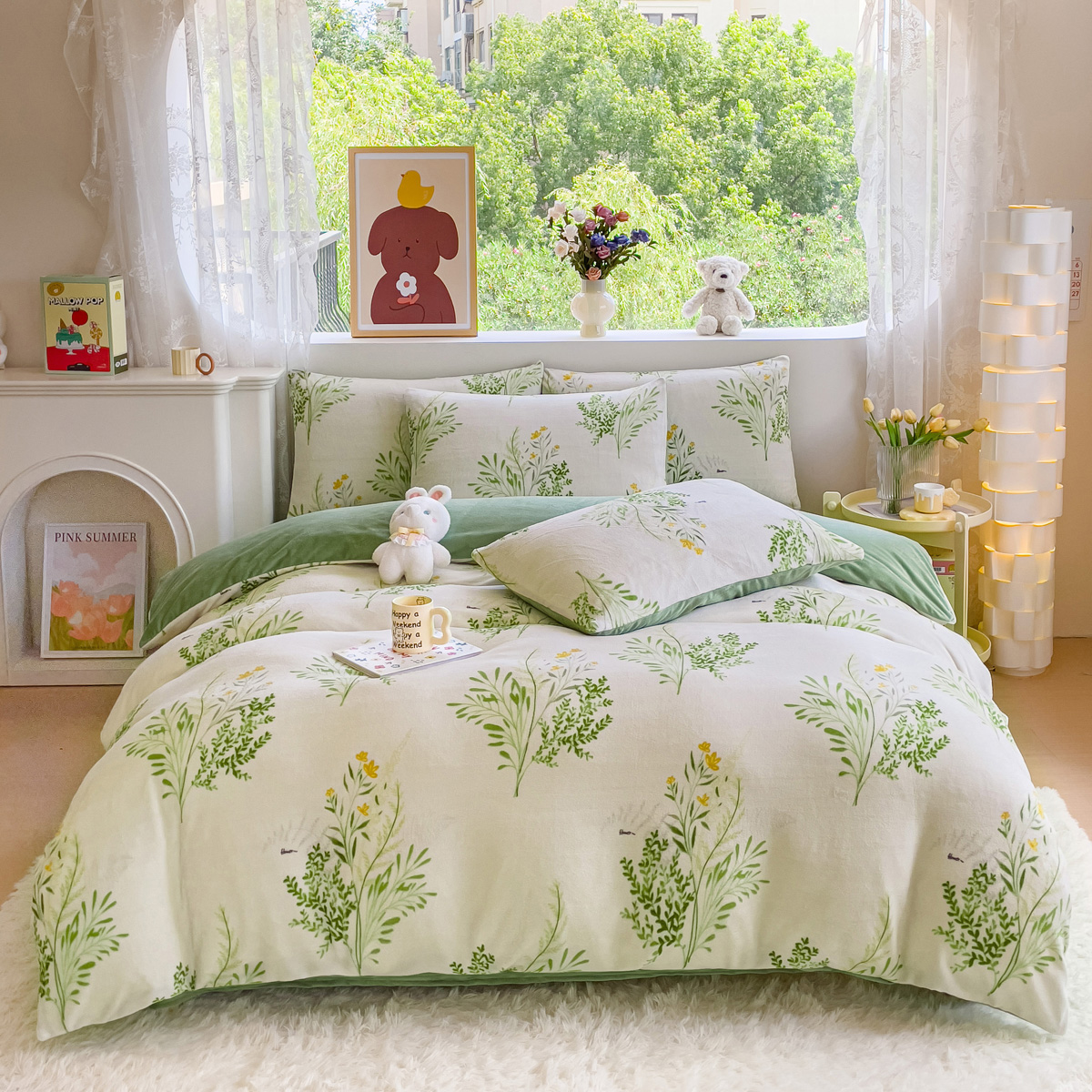 (总)晚安 2024新款小清新印花牛奶绒大版花牛奶绒四件套