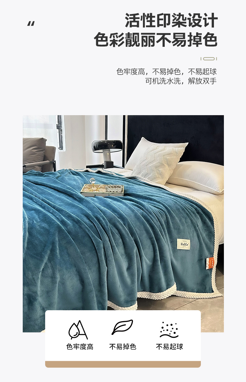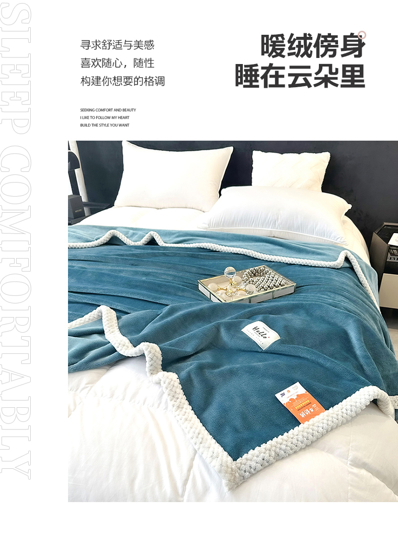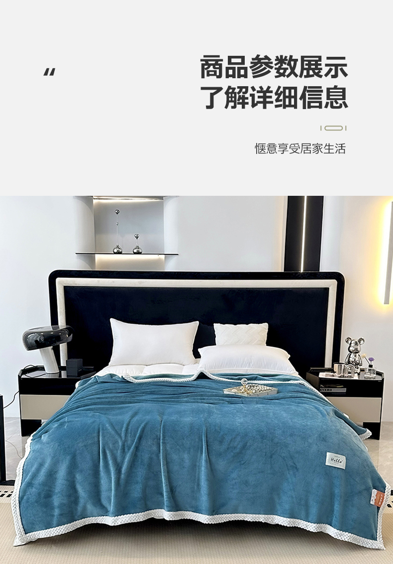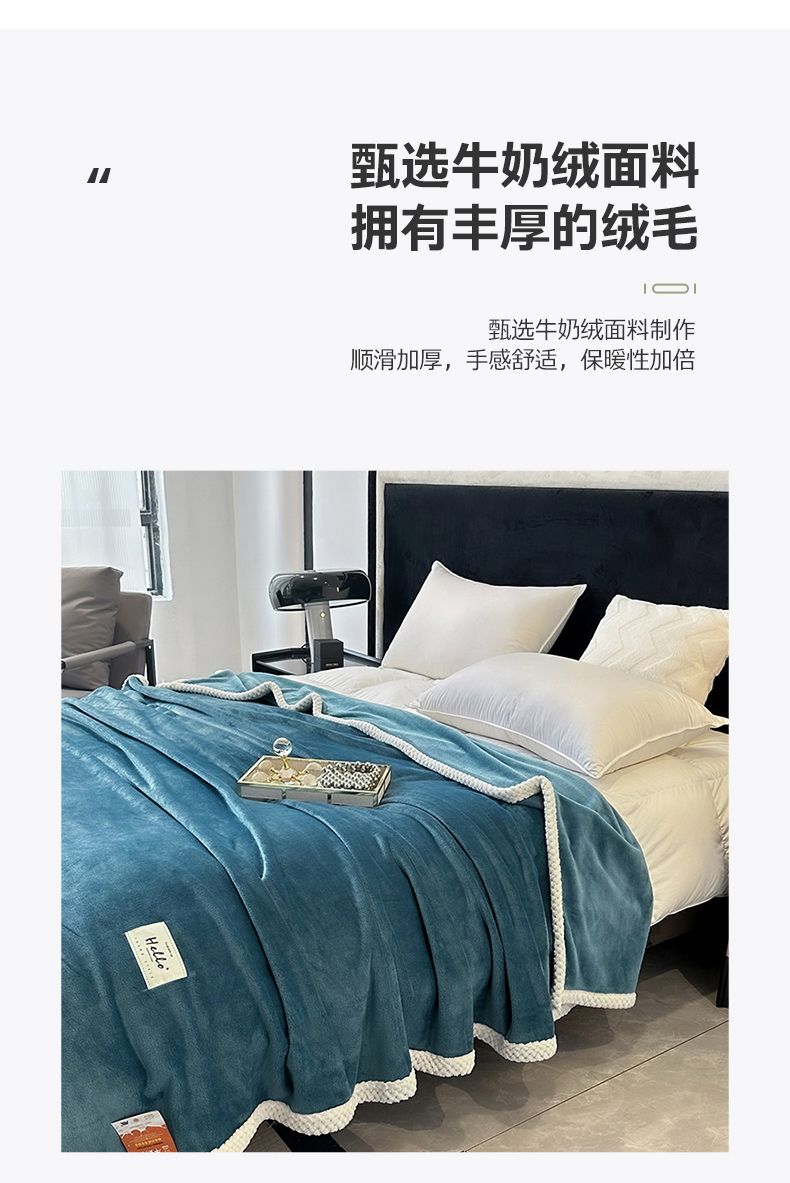 商品名称:2023新款400g高克重纯色双面牛奶绒毛毯盖毯毯子 天蓝