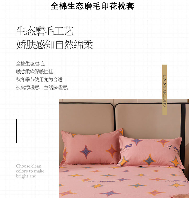 晶缦 2023新款格林系列全棉活性磨毛枕套 满天星