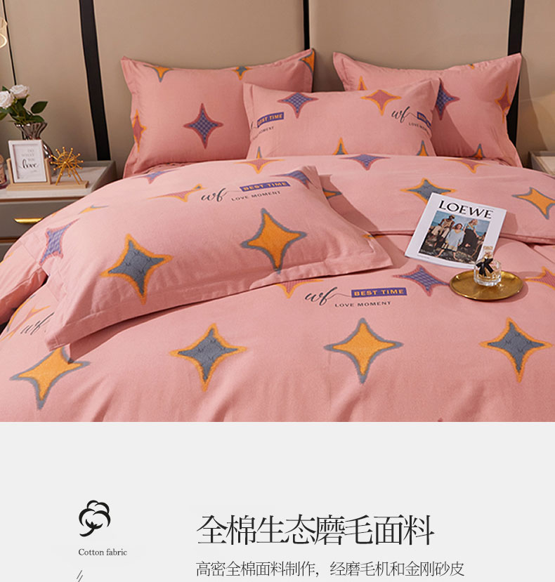 (总)晶缦家纺 2025新款加厚纯棉全棉磨毛四件套,爱恋羽叶豆沙,安梦灰,安梦咖,春风恋曲灰,春风恋影棕,淡颜粉,淡颜黄,格调熊猫棕,花灿烂绿,花曲里粉,寂香冷粉,寂香米,篱笆小筑粉,恋影春天粉,恋影春天绿,玫瑰时光黄,完美生活豆沙,熊可爱咖,叶梦格调,云夏灰,云岫流彩粉