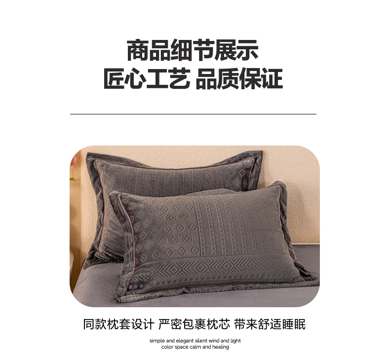 商品名称:博兰蒂 2023新款时尚烂花牛奶绒四件套-多米系列 优雅灰