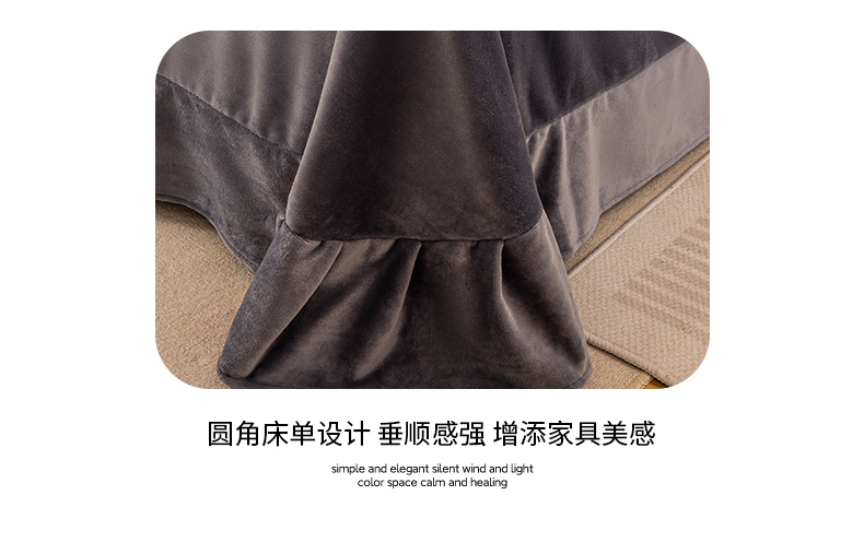博兰蒂 2025秋冬新款高克重纯色牛奶绒床裙款四件套墨紫,墨紫