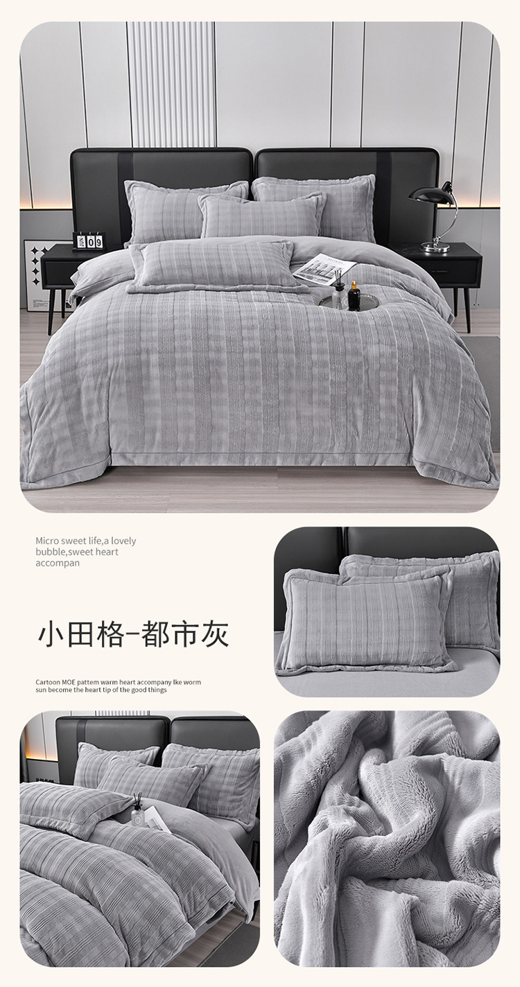 席之家 2023加厚保暖立体剪花方格兔毛绒四件套-简爱款小田格-都市灰
