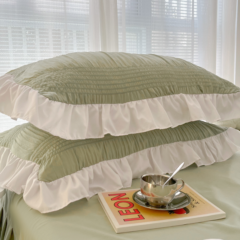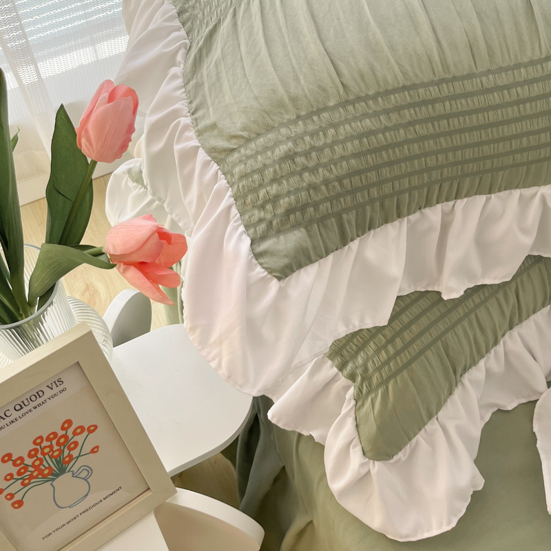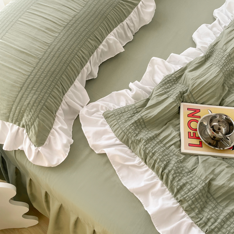 十里居 2023新款韩版花边水洗棉单床裙三件套 西芹绿